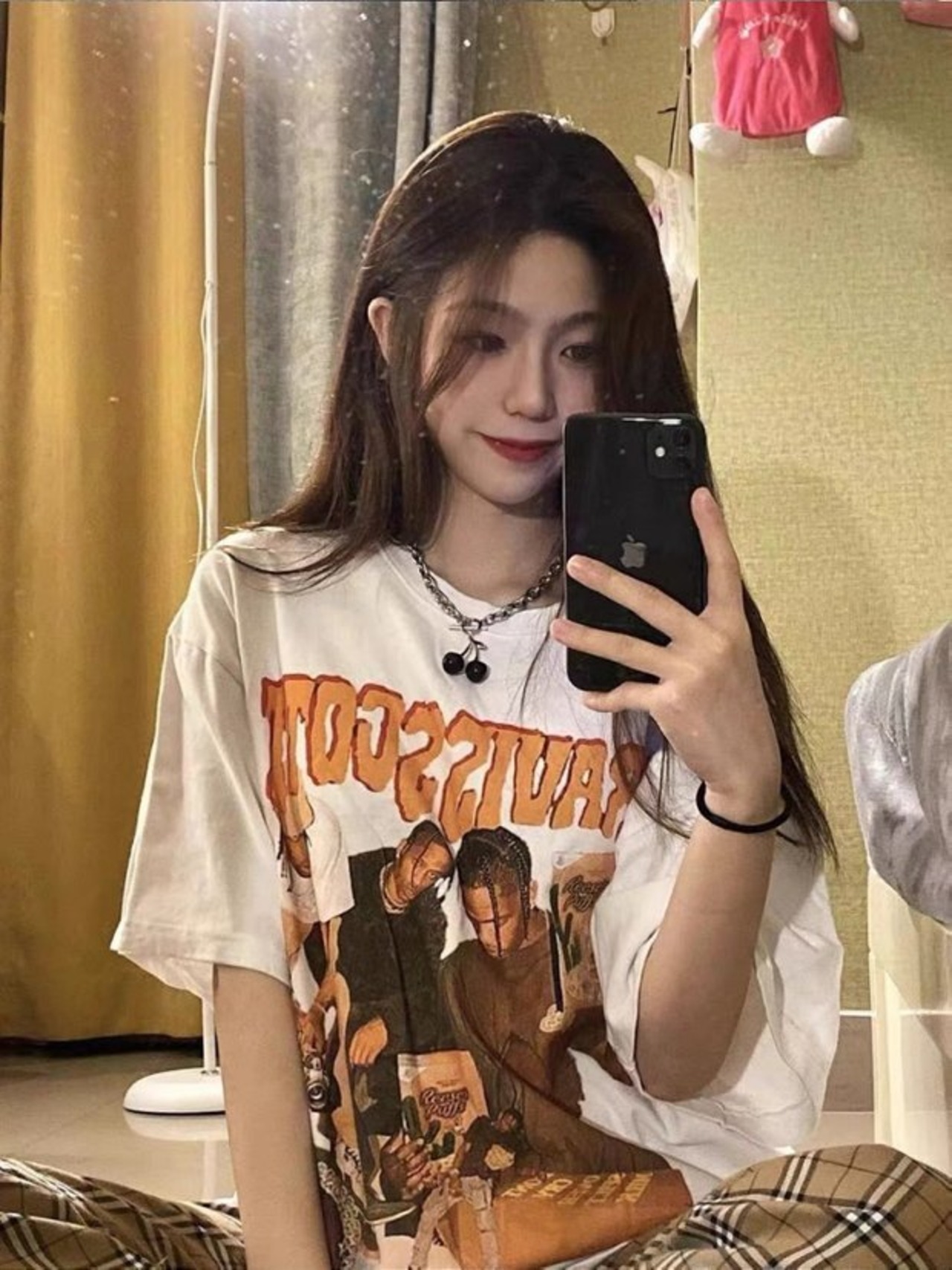 夏服Tシャツレディース韓国ファッショントレンドスタンダードプリントルーズトップス レトロ 夏物 スタイル デーモン27678289932