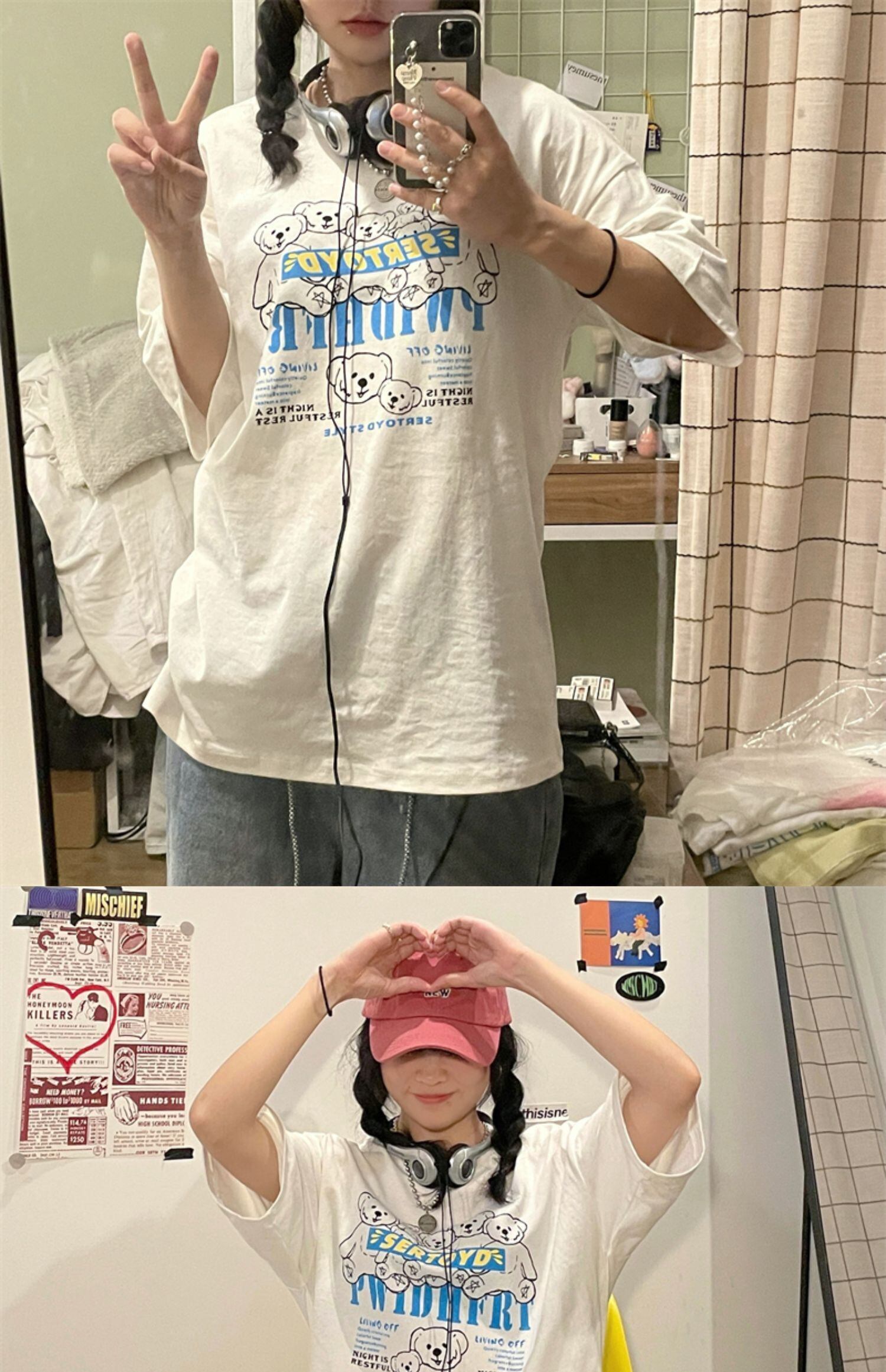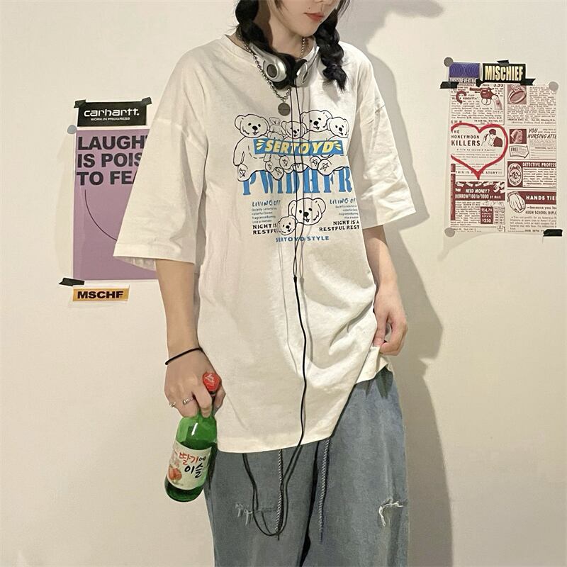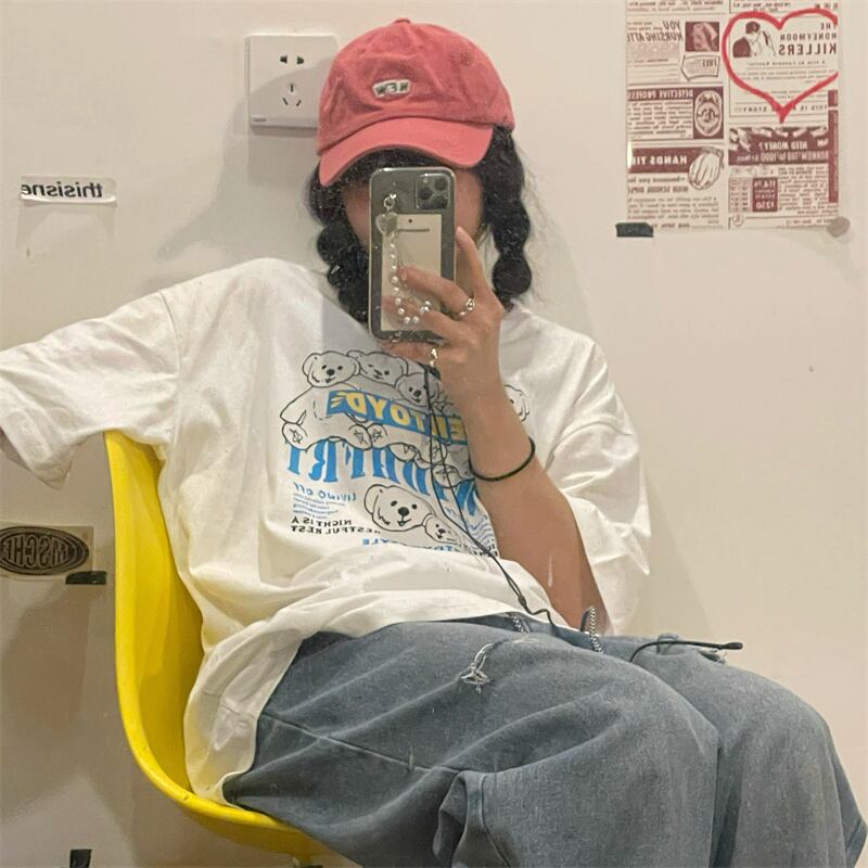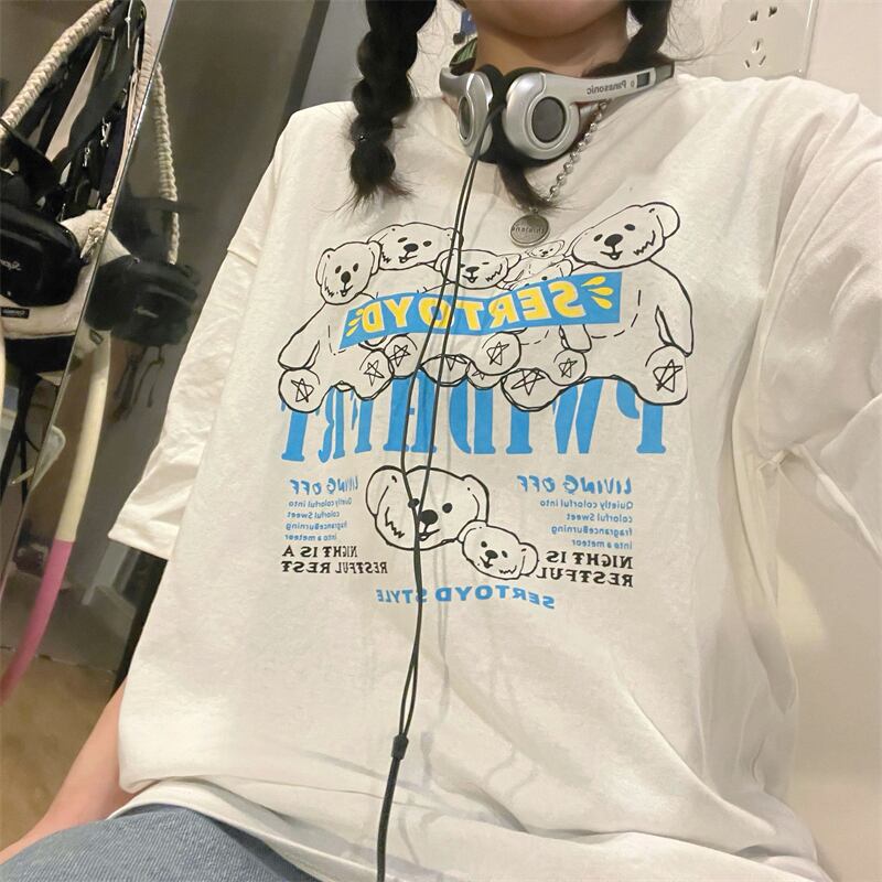 ホワイトTシャツレディース夏服韓国ファッショントレンドプリントルーズトップス 大人ガーリー スウィート キュート カジュアル 夏物 スタイル デーモン4455633915