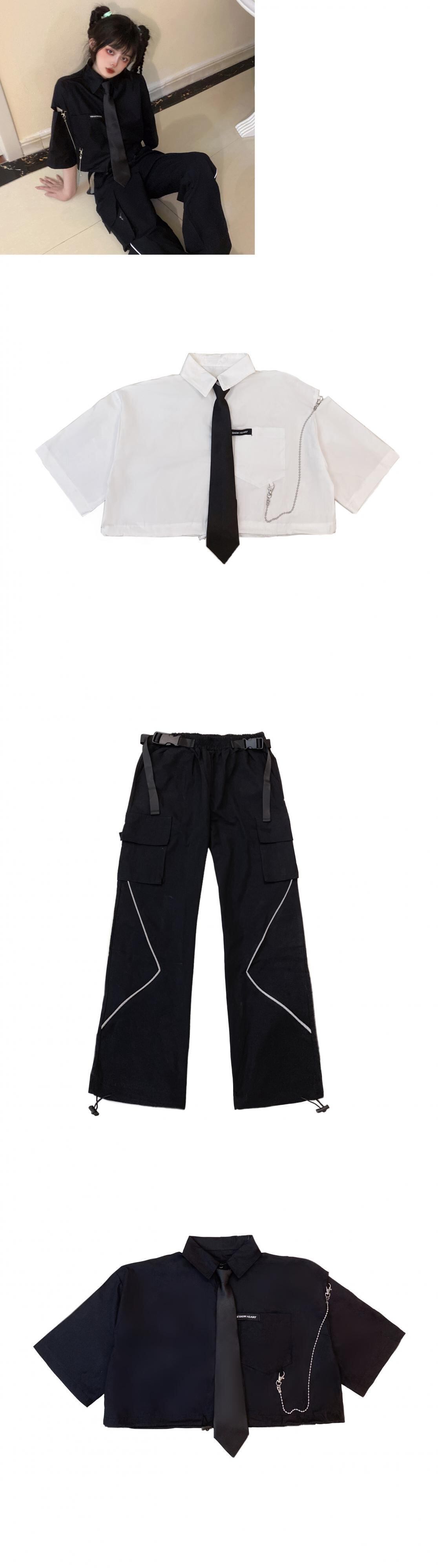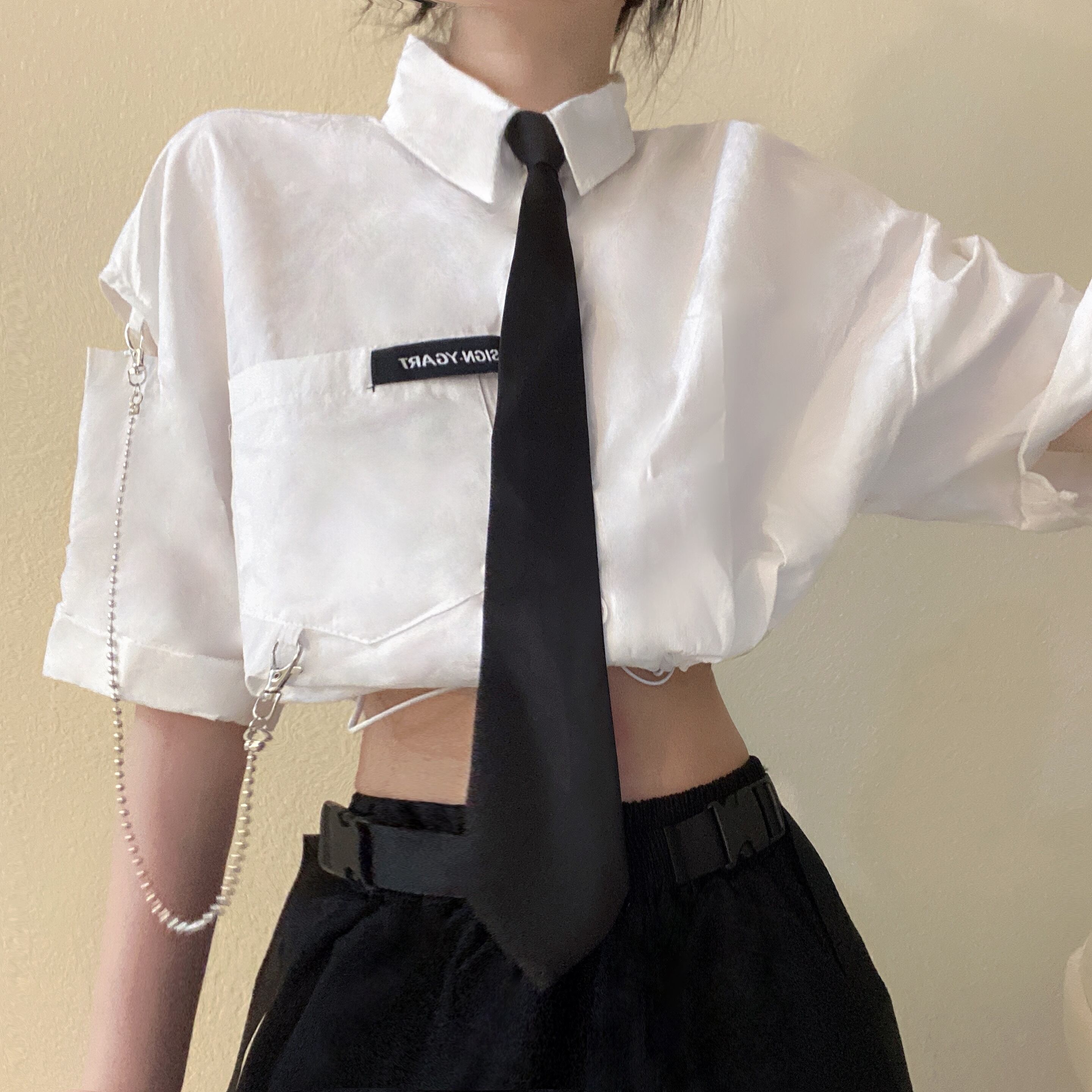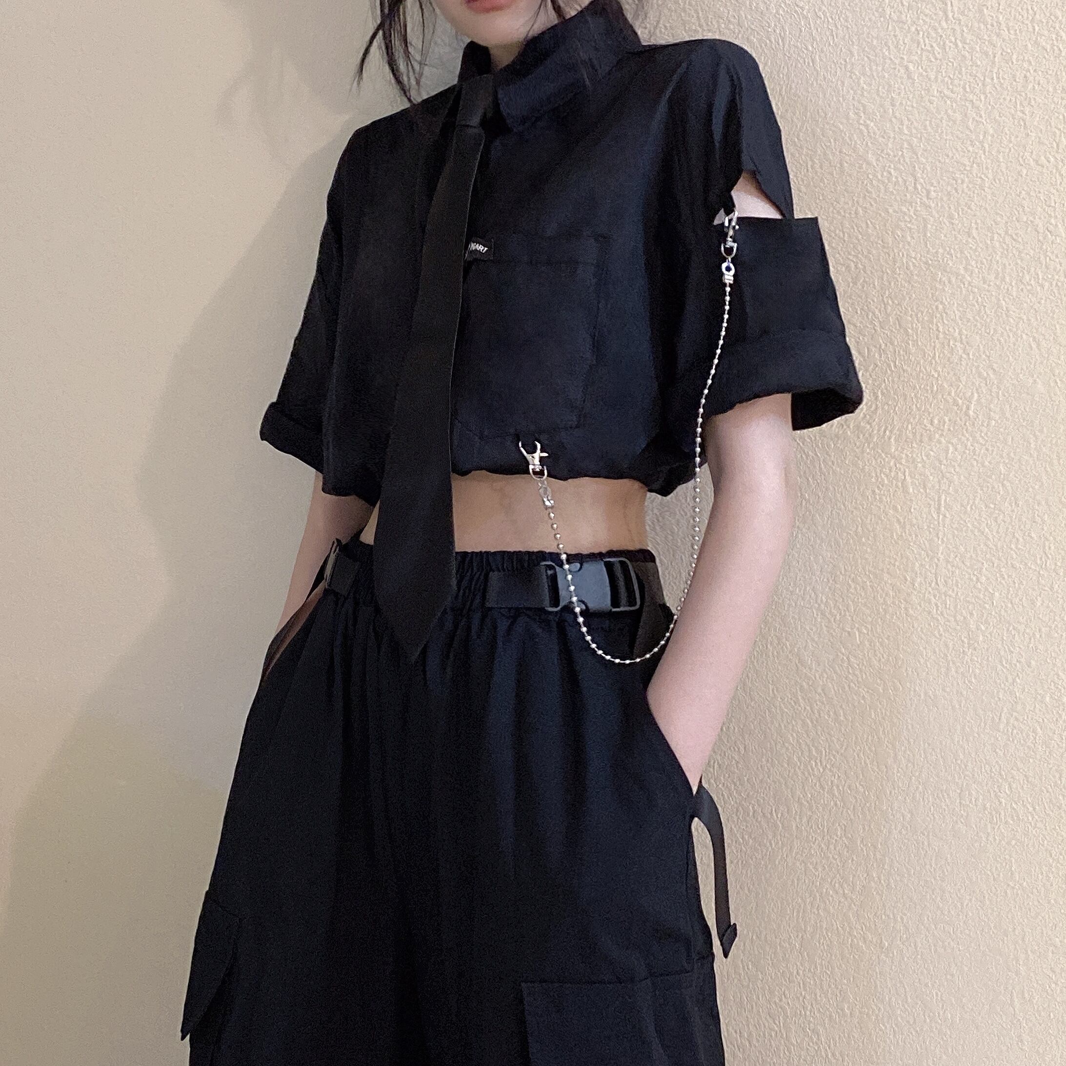夏服レディーストレンドストライプショートチェーン シャツ 夏物 デーモン87445609323