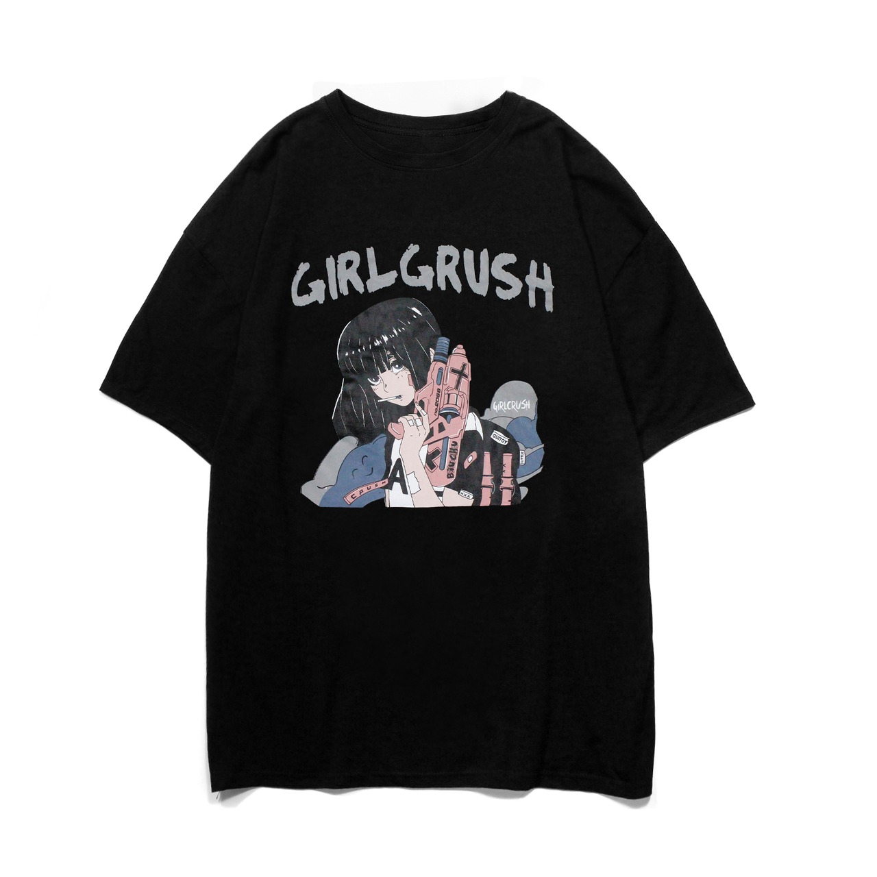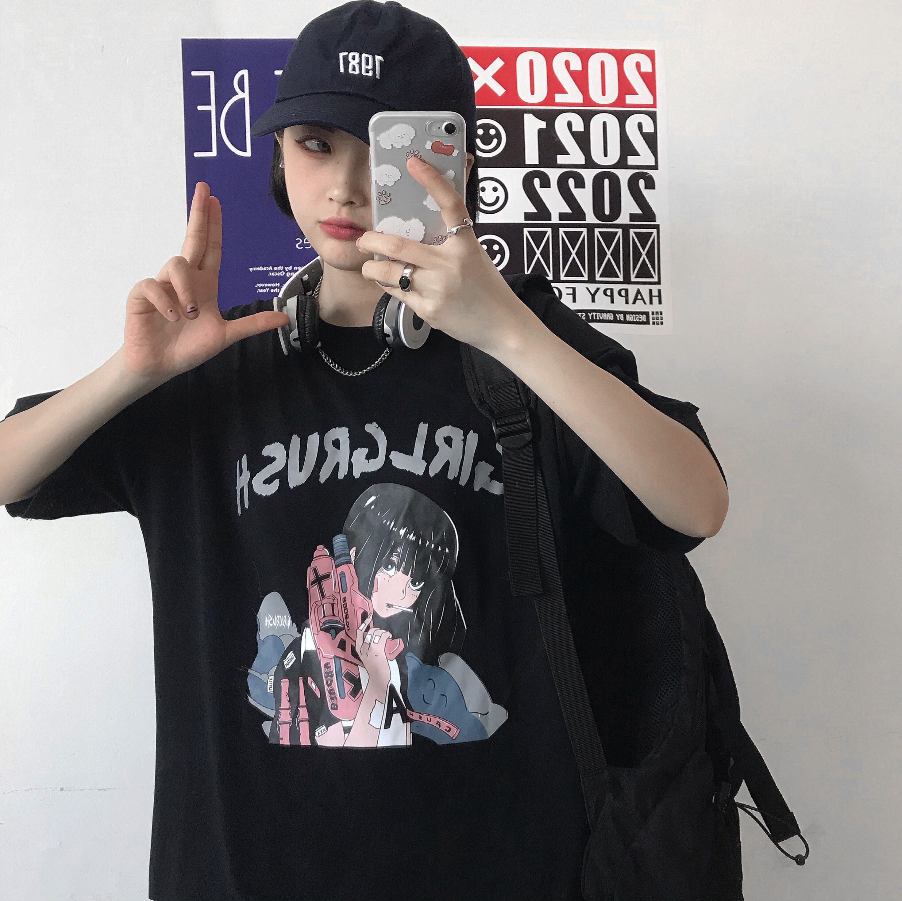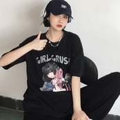 夏服Tシャツレディース韓国ファッショントレンドダークプリントルーズラウンドネックトップス 夏物 Oネック ボーイズ スタイル デーモン25823783757