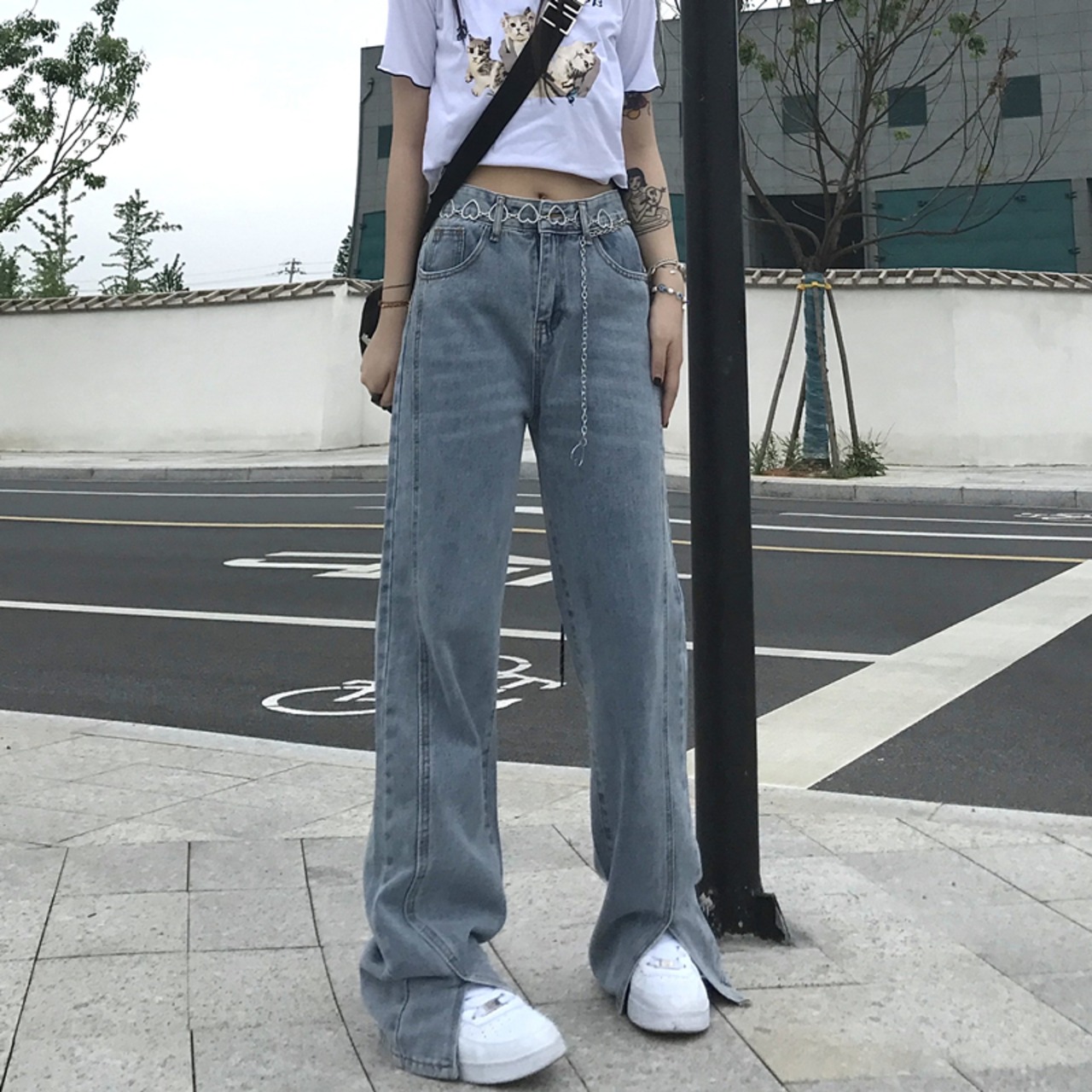 ウェストジーンズ レディース夏服トレンドスタンダードルーズ薄手パンツ レトロ 夏物 ステッチ ボーイズ ウエスト デーモン44202799054