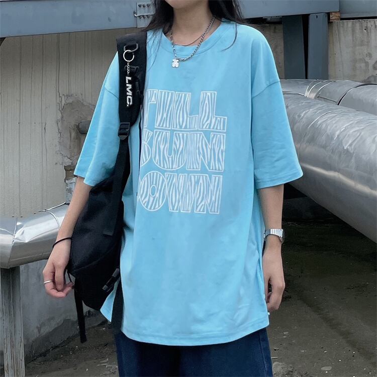 Tシャツレディース夏服韓国ファッショントレンドプリントラウンドネックルーズトップス 夏物 Oネック スタイル デーモン27118279244