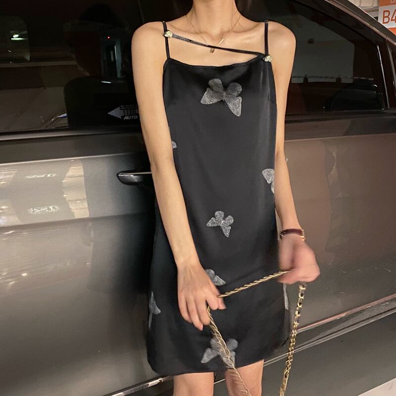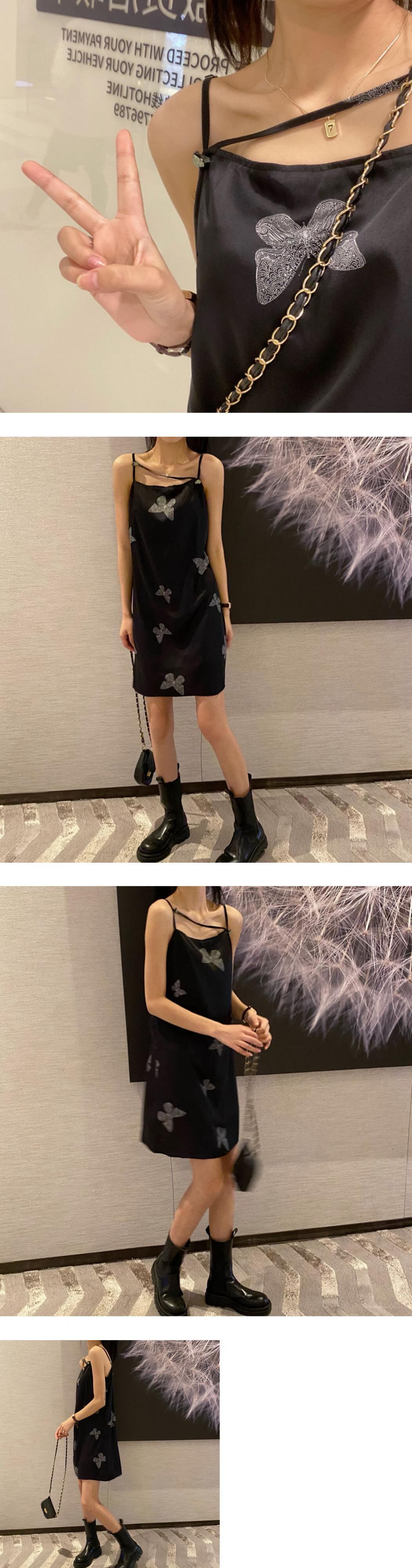 スカート レディース夏服トレンドスタンダードButterflyデザイン ブラック薄手Aラインワンピース レトロ 夏物 デーモン32551836716
