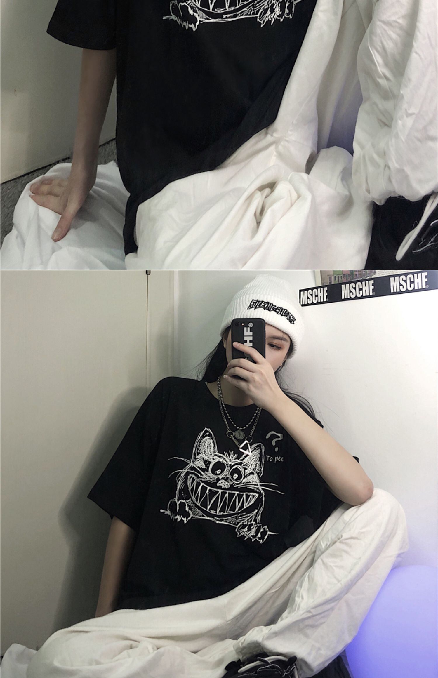 ジャケット レディース夏服韓国ファッショントレンドプリントホワイトルーズTシャツ 夏物 スタイル デーモン61312039876