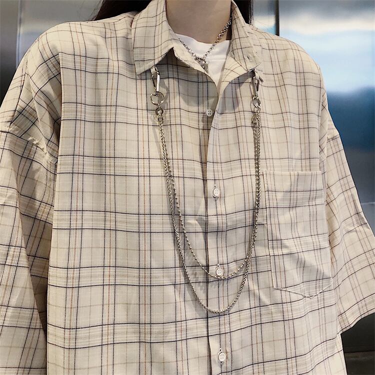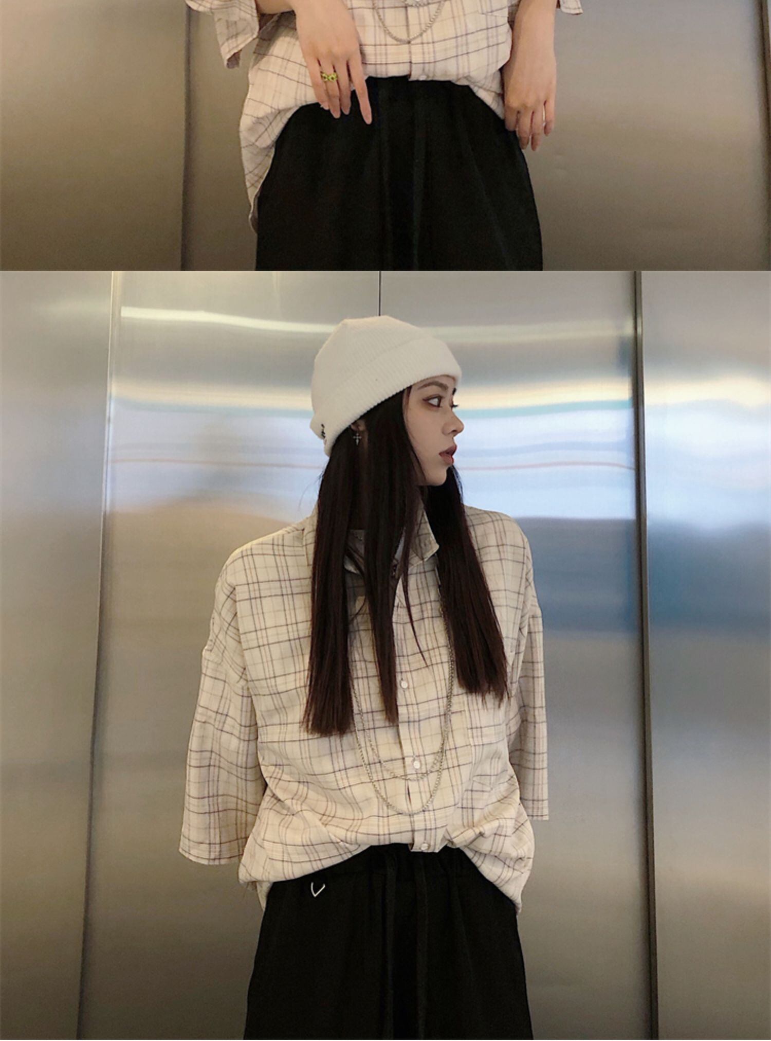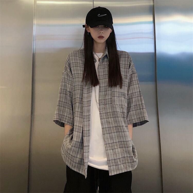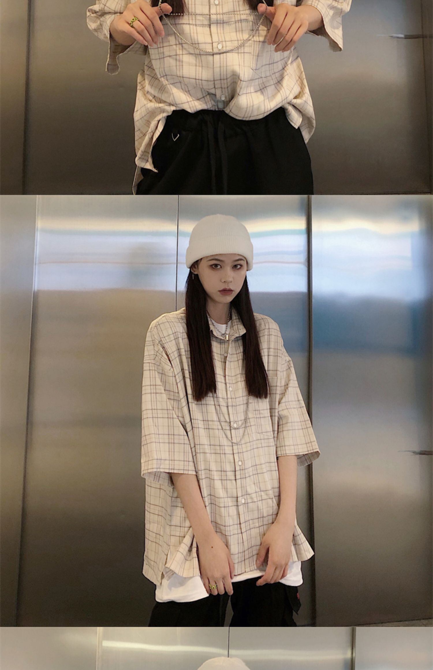 夏服シャツ レディース韓国ファッショントレンドスタンダードチェーン ルーズ格子柄トップス レトロ 夏物 ボーイズ スタイル デーモン49809269552