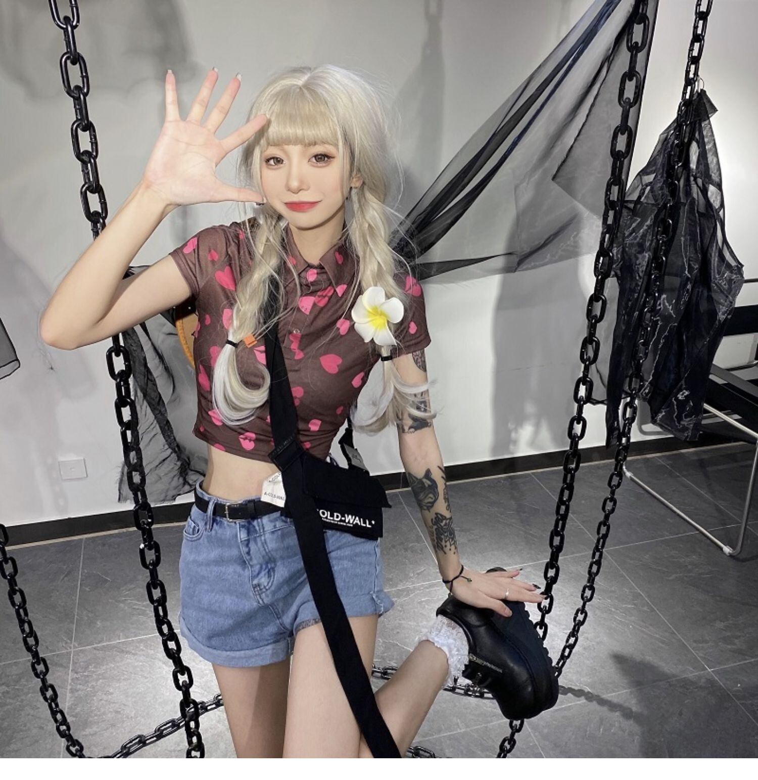 夏服ショートTシャツレディース韓国ファッショントレンドスタンダードカラープリントスリムトップス レトロ 夏物 スタイル デーモン47065947566