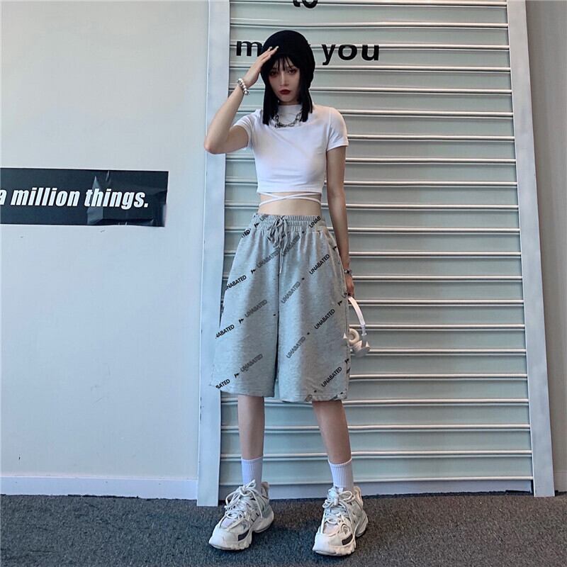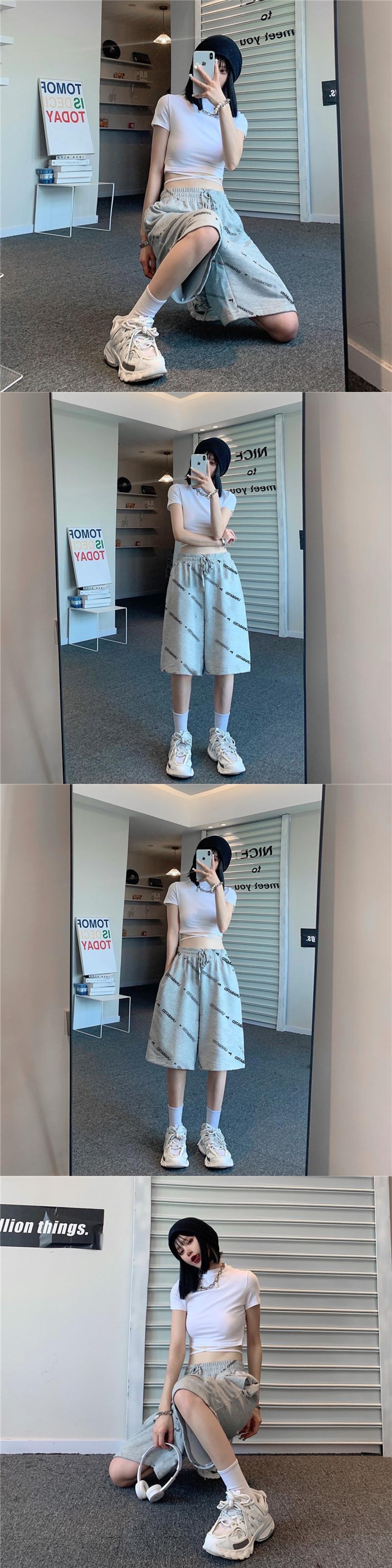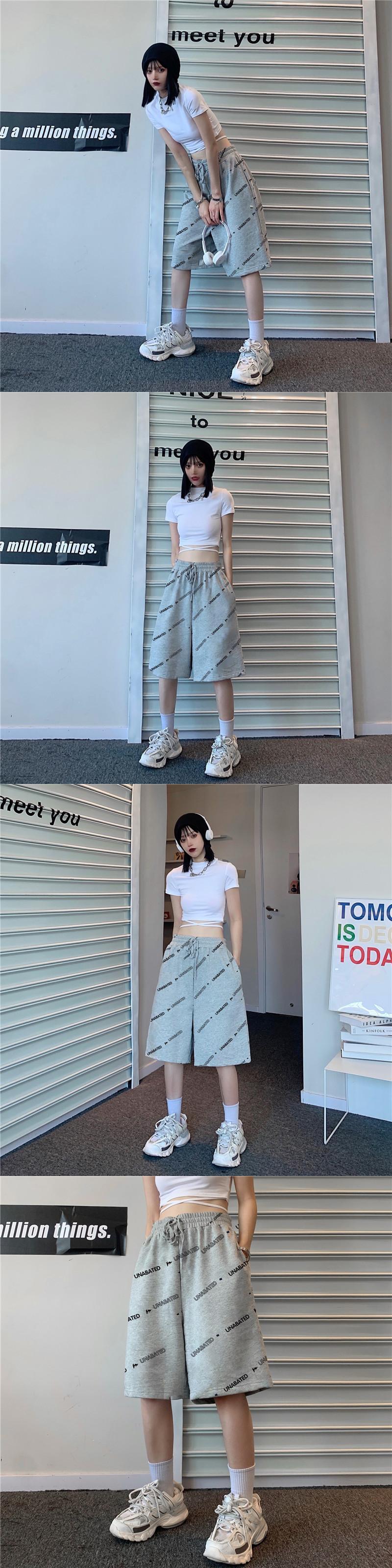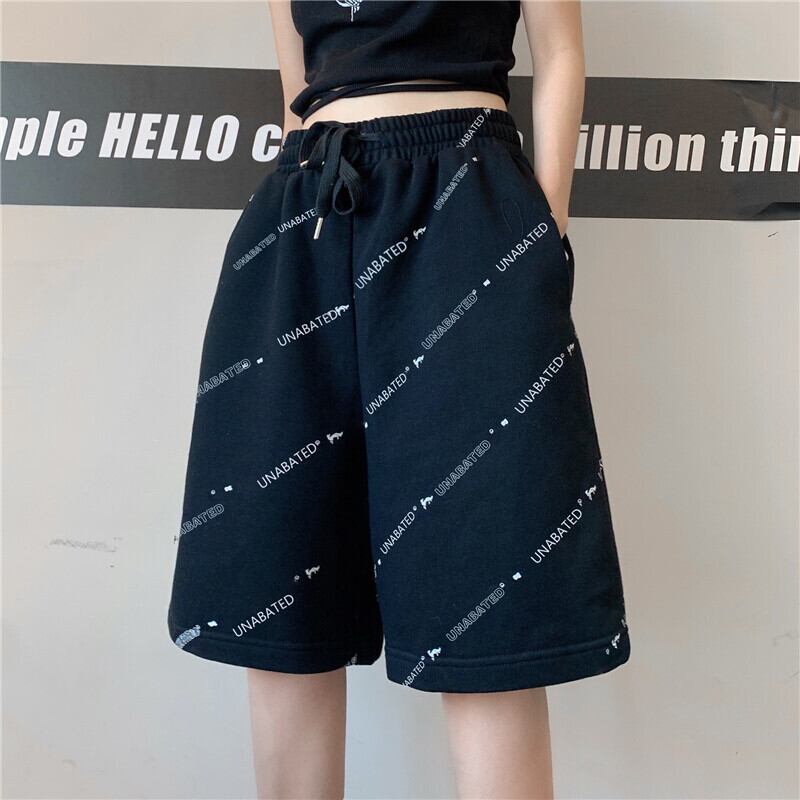 夏服ショーツ レディーストレンドプリントパンツ ハイウェストウェストルーズ薄手ブラック 夏物 ウエスト デーモン64100522699