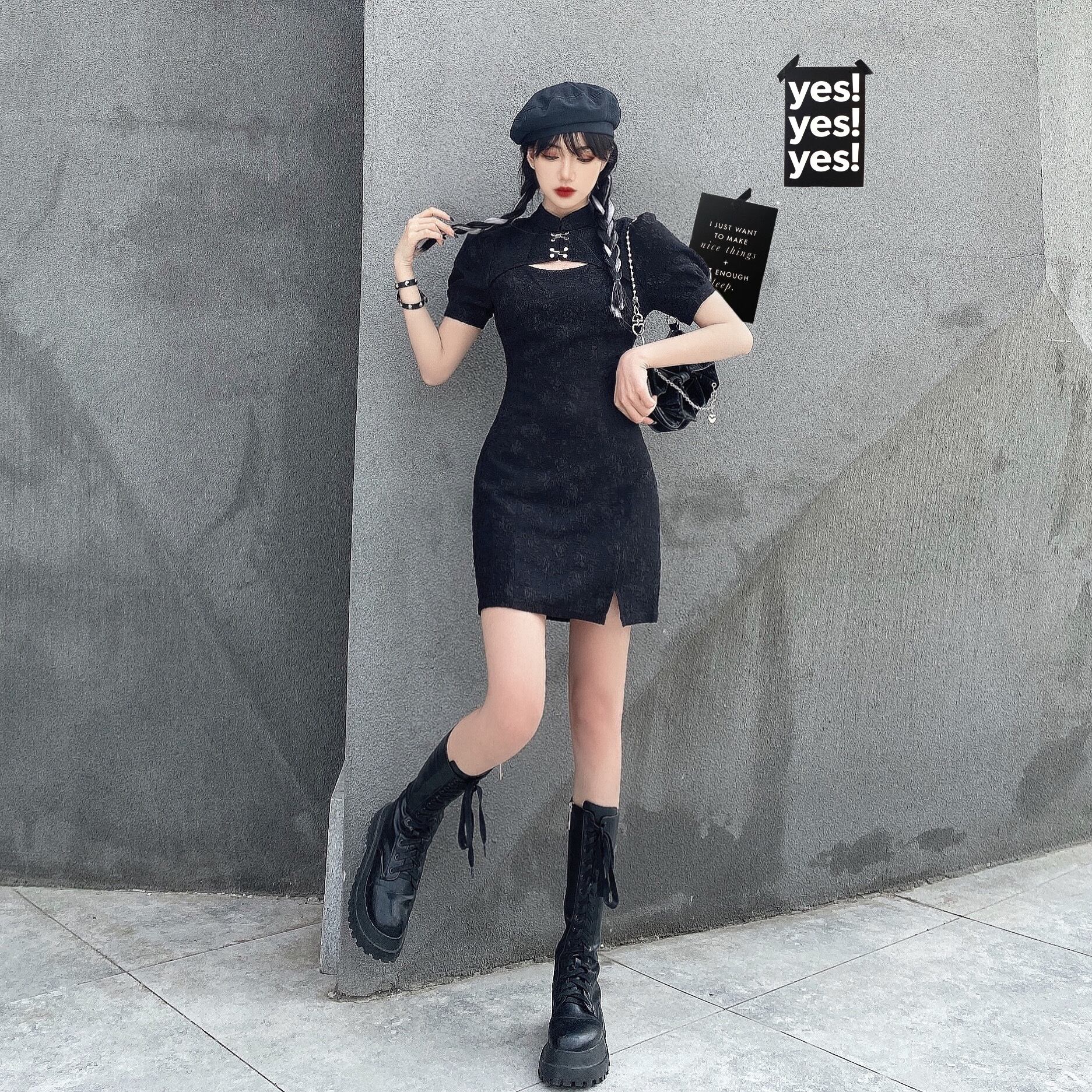 夏服ワンピースレディーストレンドダークスタンダードハイウェストウェストAラインショートスカート レトロ 夏物 ウエスト デーモン91293520946