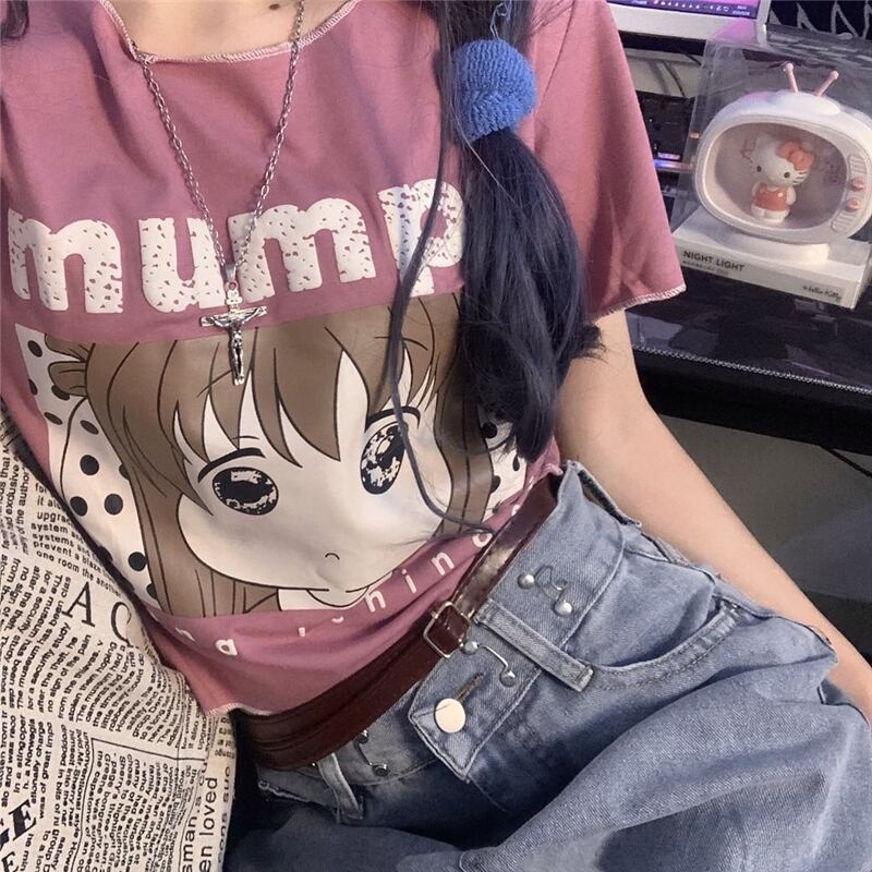 Tシャツレディース夏服韓国ファッショントレンドプリント柄ショートルーズトップス 大人ガーリー スウィート キュート カジュアル 夏物 スタイル デーモン81981634263