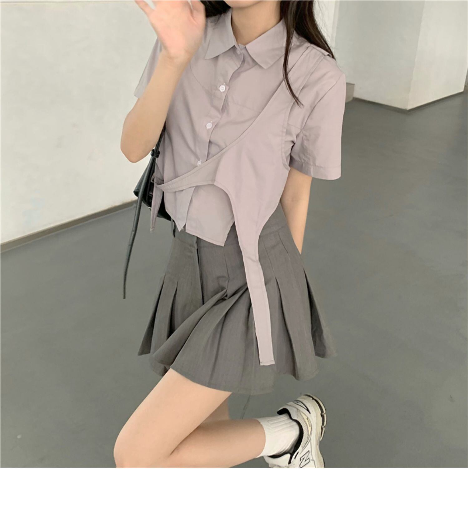 レディース夏服トレンドショートシャツ Aラインプリーツスカート 夏物 デーモン89542872480