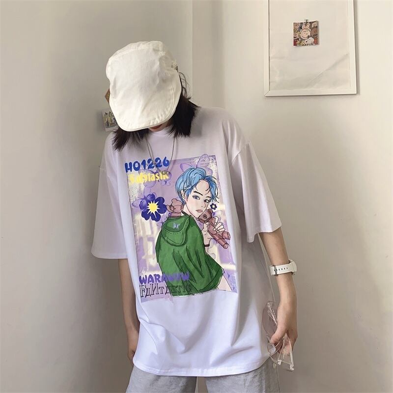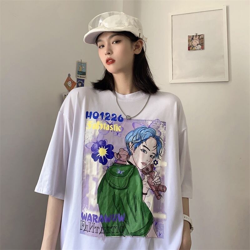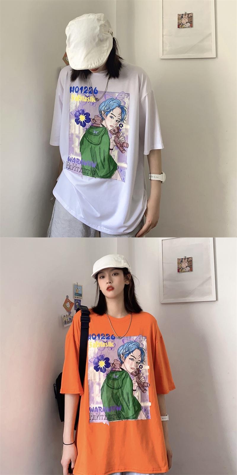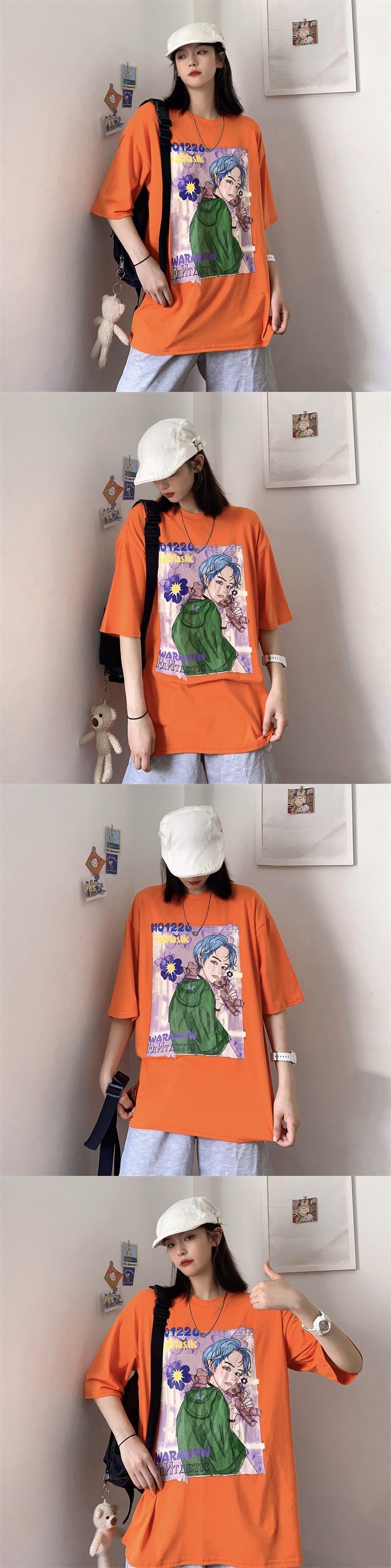 Tシャツトップス レディース夏服韓国ファッショントレンドスタンダードプリントルーズラウンドネック レトロ 夏物 Oネック スタイル デーモン77605261513