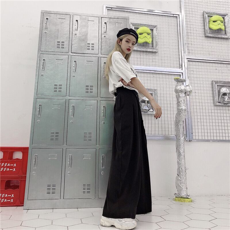 夏服パンツ レディーストレンドスタイル薄手バックルハイウェストウェストルーズカジュアル 原宿 夏物 ウエスト デーモン97128019787