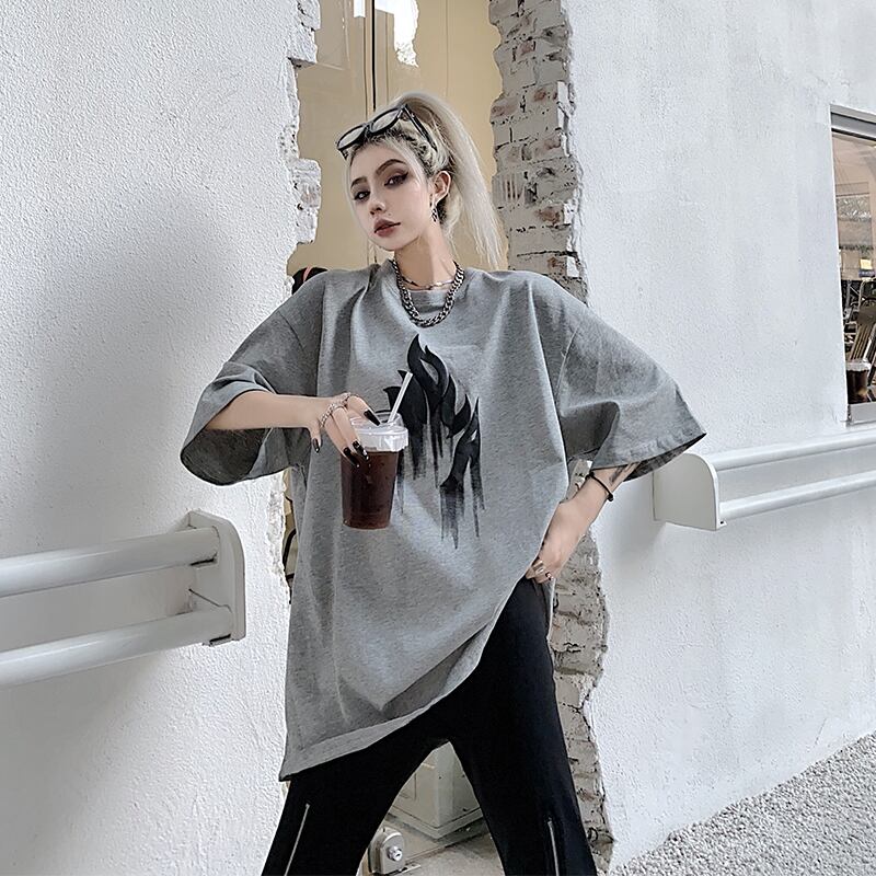 Tシャツトップス レディース夏服韓国ファッショントレンドスタイルプリントルーズラウンドネック半袖スリーブ ショート ハーフスリーブ 原宿 夏物 Oネック ボーイズ デーモン39544190249