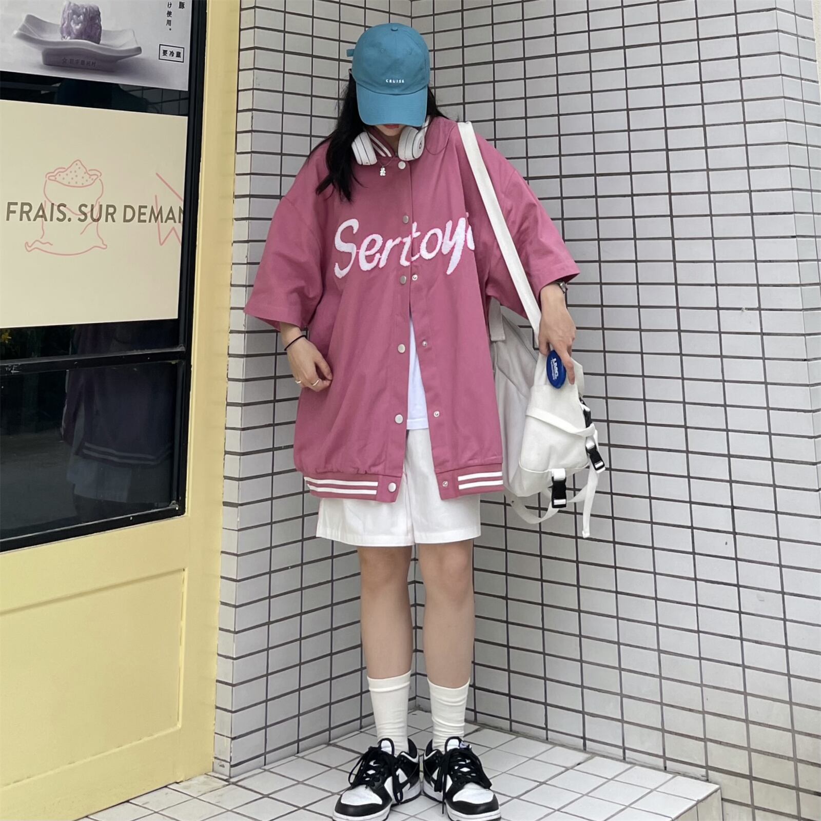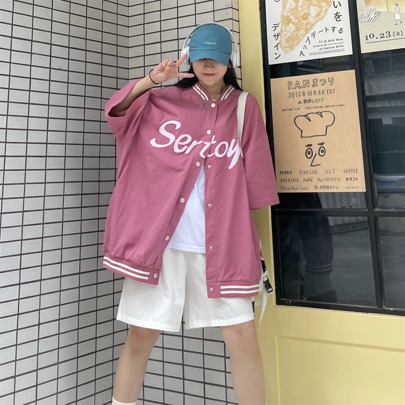 レディース夏服トレンドスタンダード刺繍ルーズカーディガンジャケット Tシャツ レトロ 夏物 ボーイズ デーモン4746327118