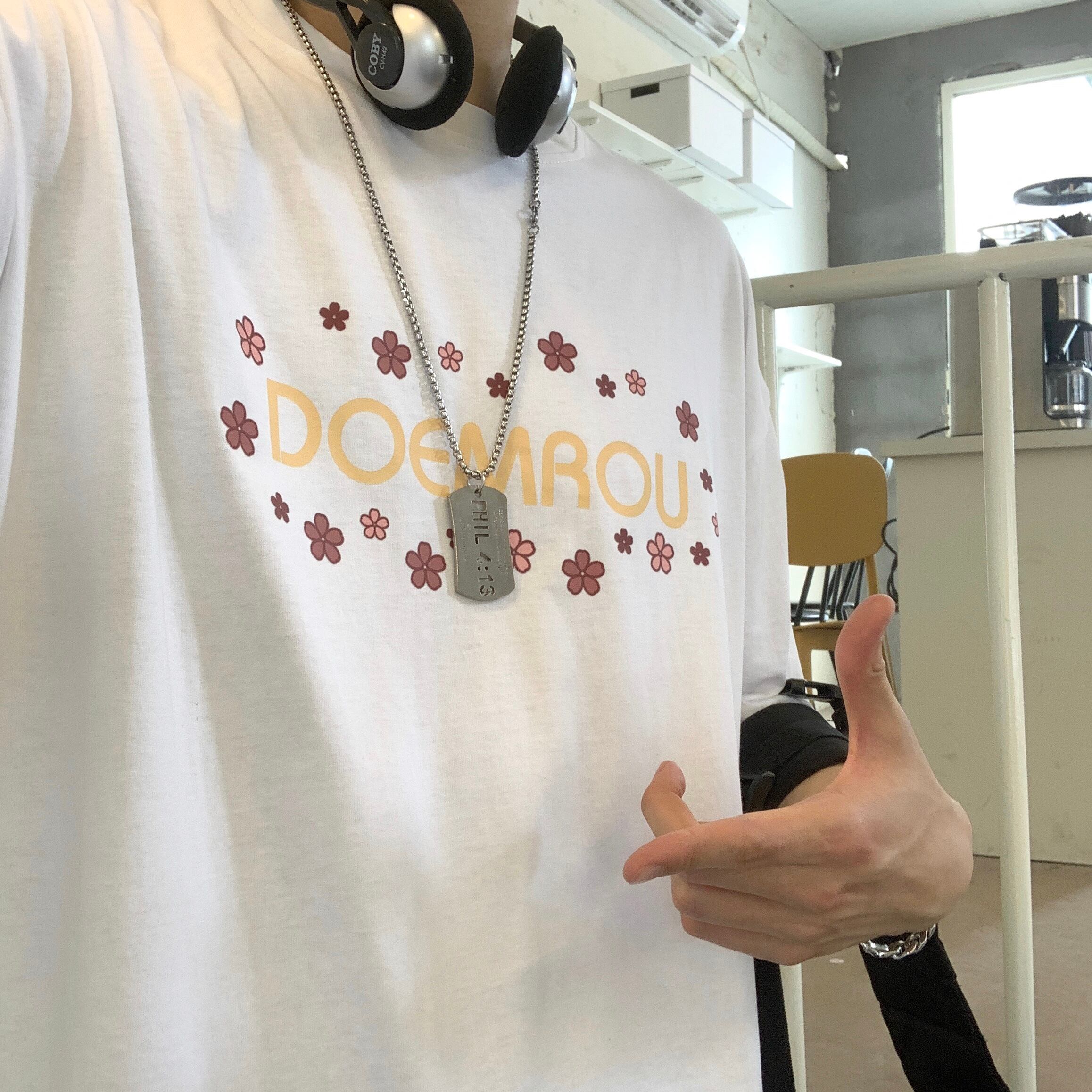 Tシャツ夏服レディーストレンドFlowerデザイン プリントルーズトップス 夏物 フラワーデザイン ボーイズ デーモン18680800868