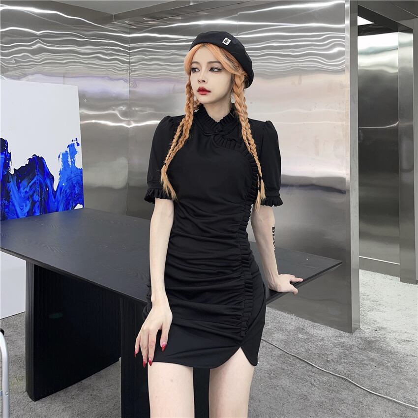 ブラックワンピースレディース夏服トレンドスタンダードスリム レトロ 夏物 デーモン47808068185