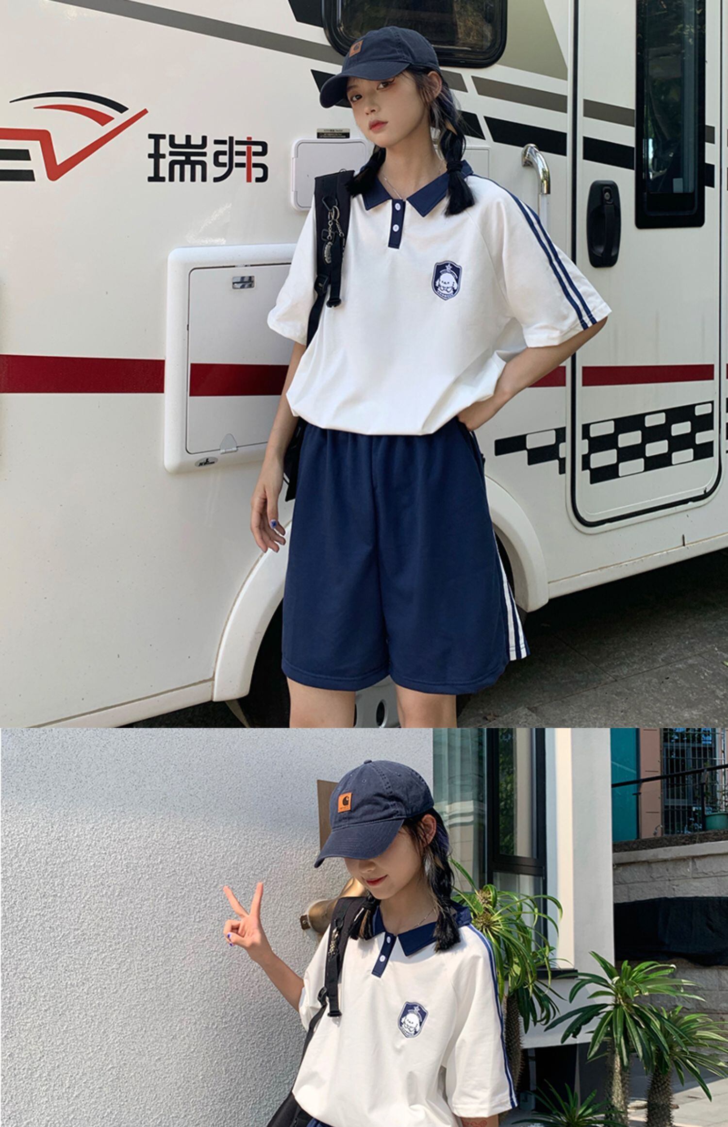 カジュアルレディース夏服トレンドルーズ刺繍半袖スリーブショーツ ショート ハーフスリーブ 夏物 ボーイズ デーモン85991768290