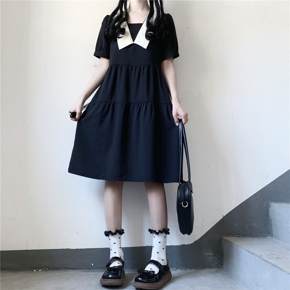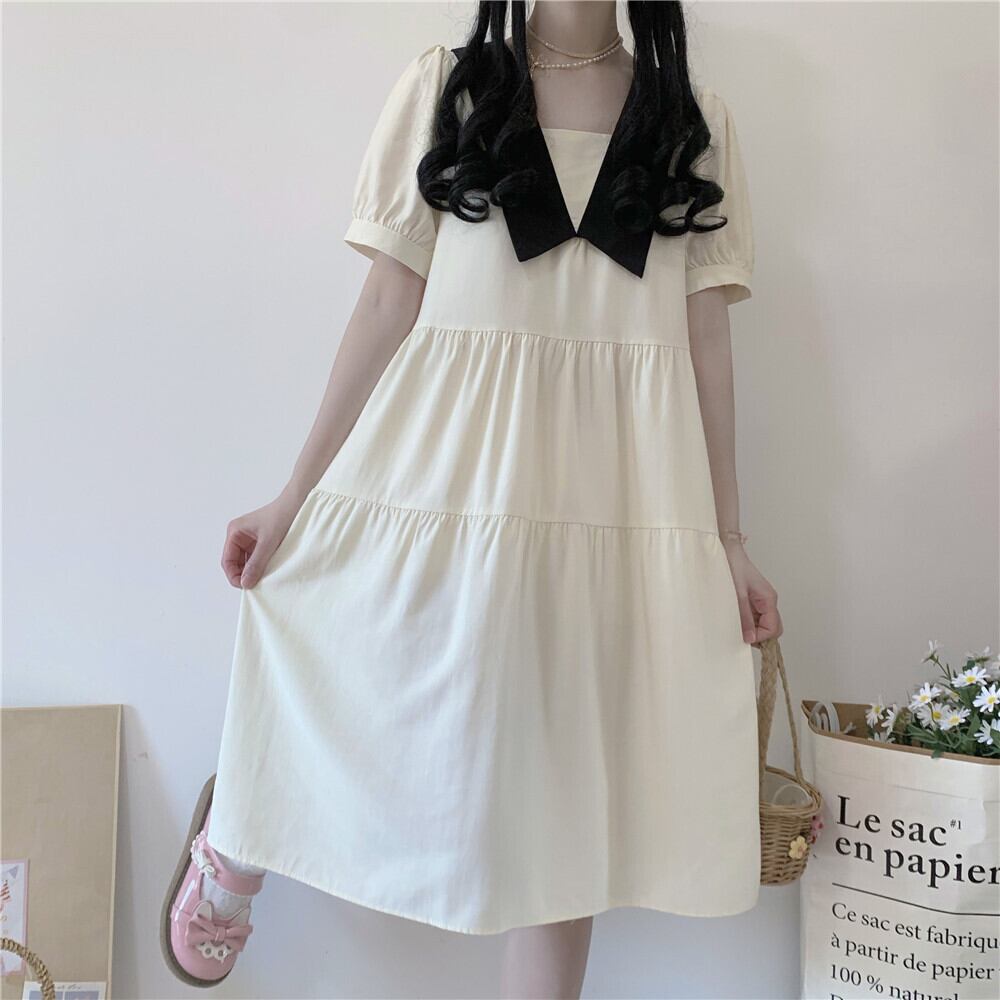夏服ワンピースレディース韓国ファッショントレンドスタンダードカラーハイウェストウェストAラインスカート レトロ 夏物 スタイル ウエスト ミドル丈 デーモン19012535927