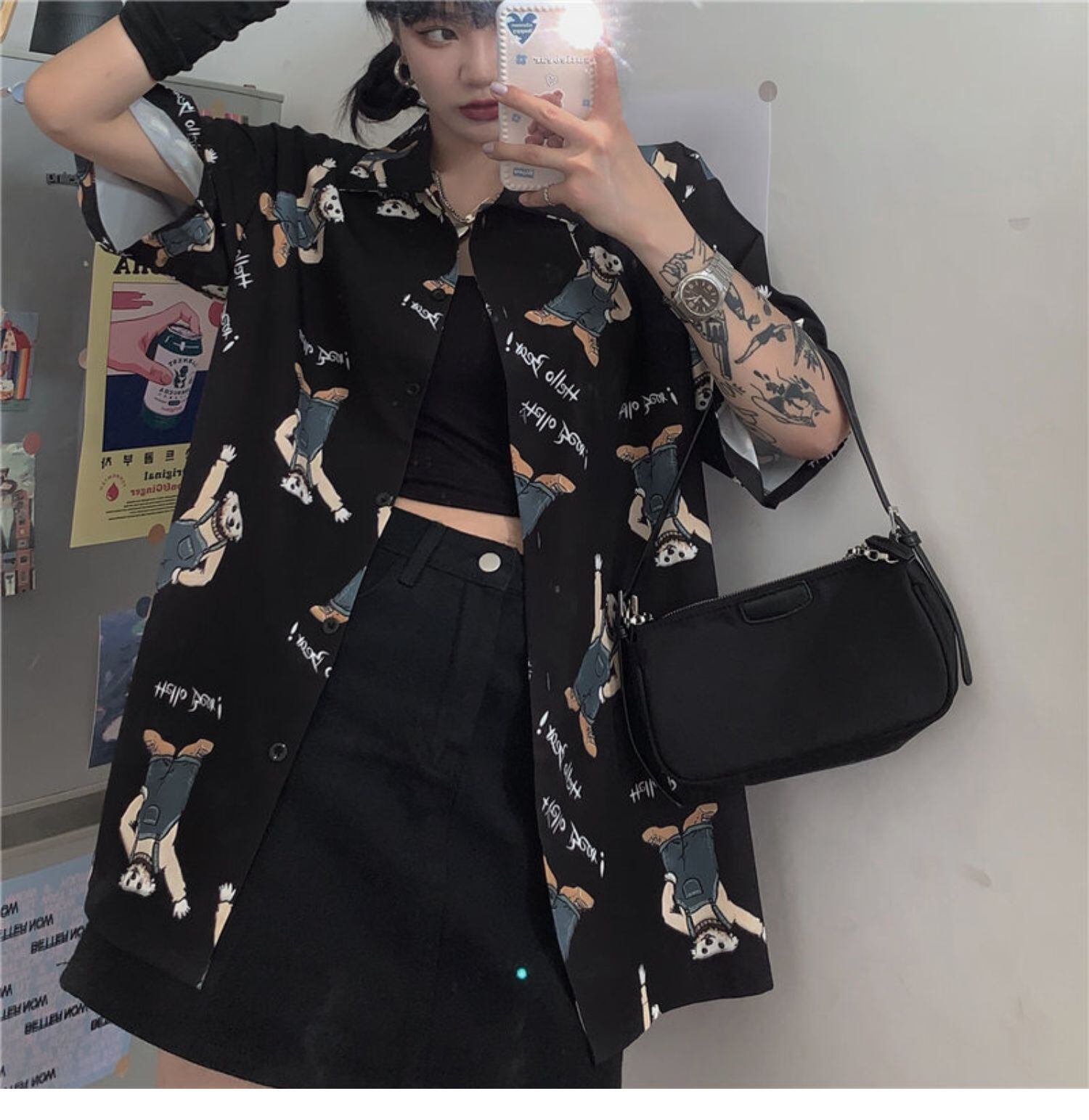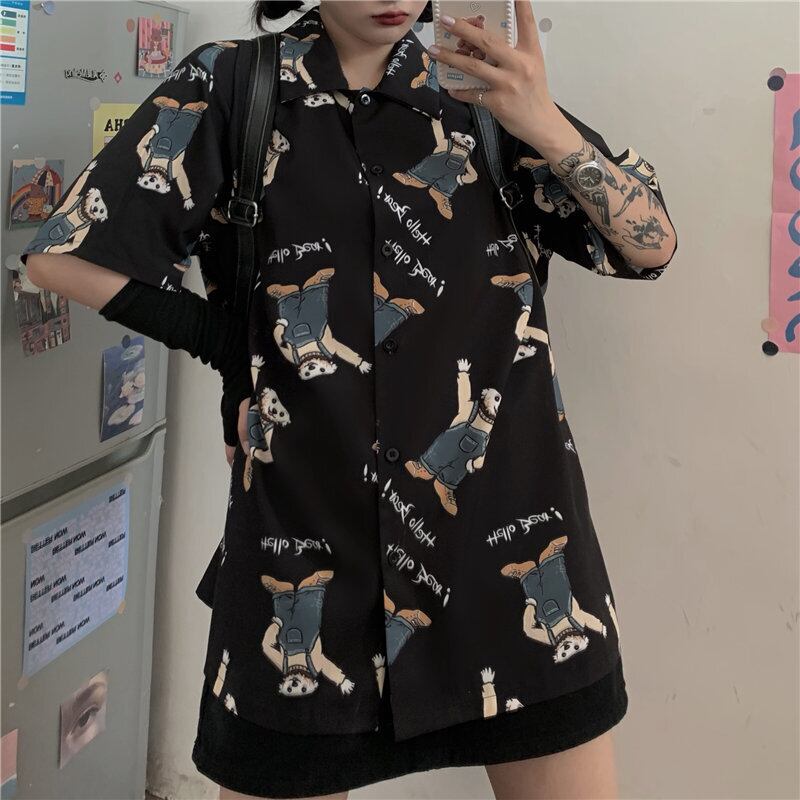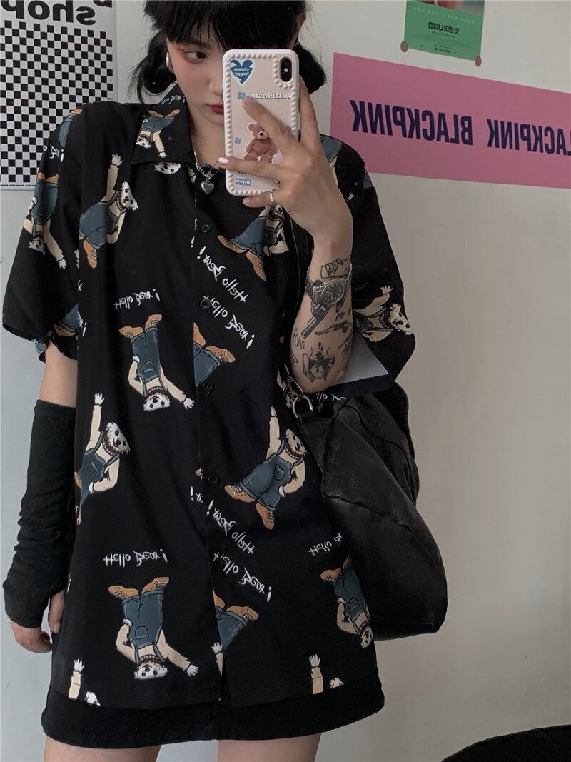 夏服シャツ レディース韓国ファッショントレンドプリントルーズトップス 夏物 ボーイズ スタイル デーモン99675104090