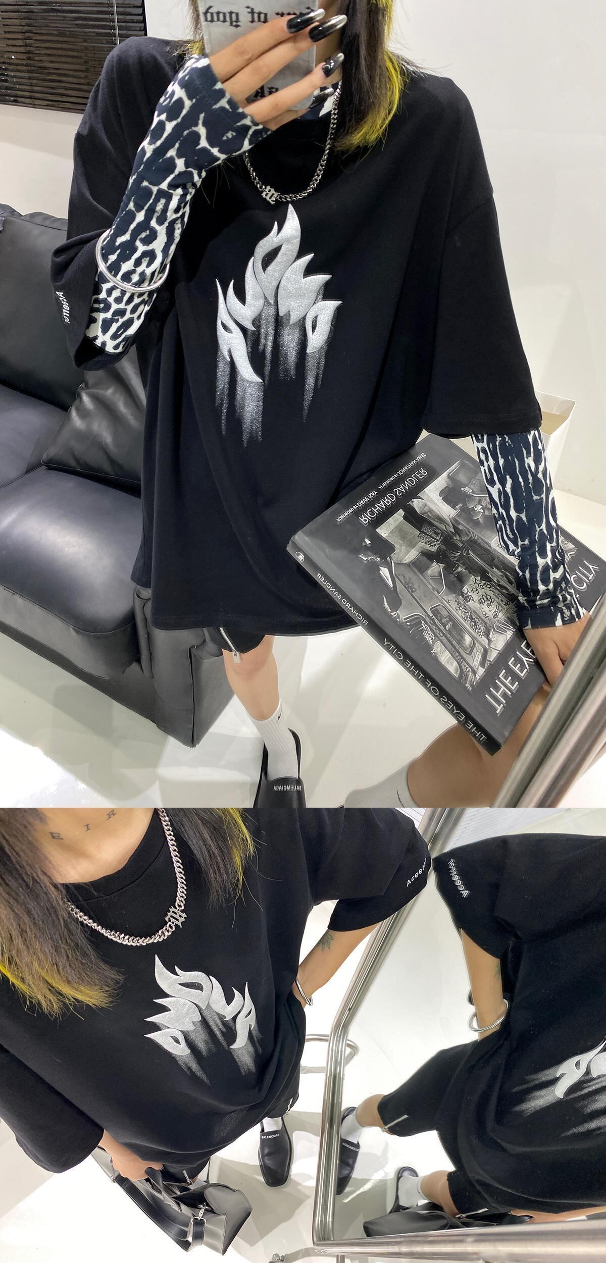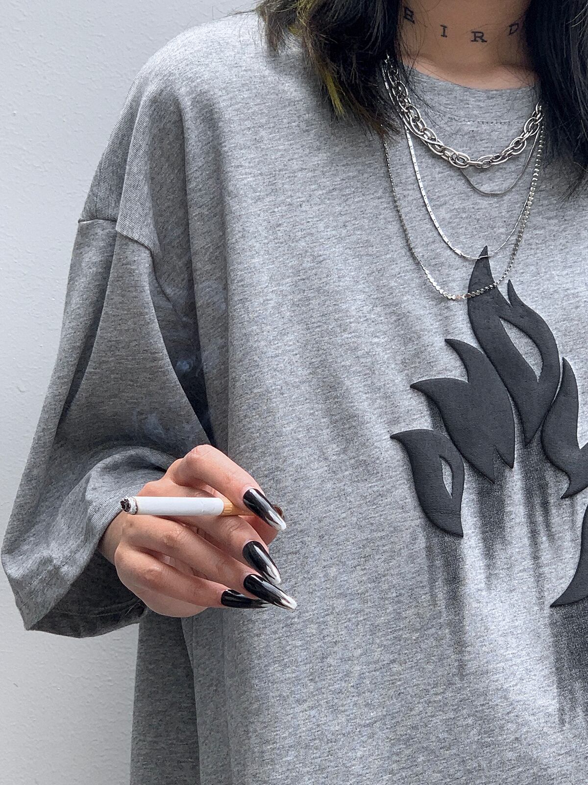 スタイルTシャツレディース夏服韓国ファッショントレンドプリントグレールーズトップス 原宿 夏物 デーモン16167683857