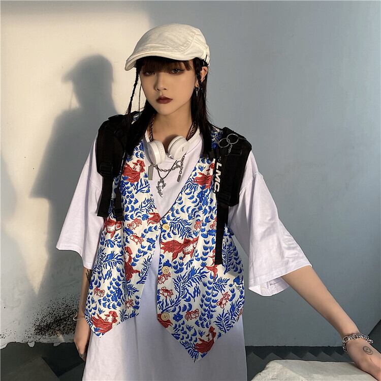 夏服レディース韓国ファッションスタンダードプリントカジュアルジャケット レトロ 夏物 スタイル ウエスト デーモン59483667949