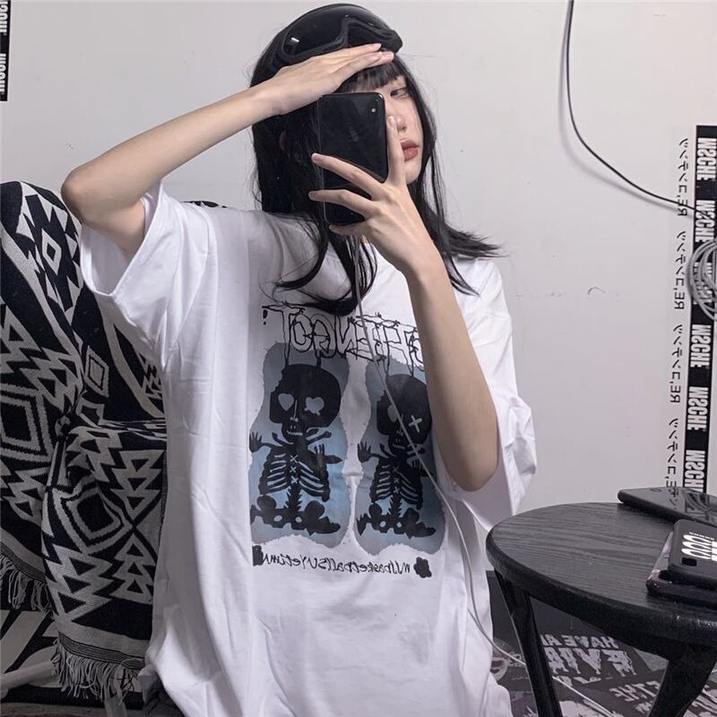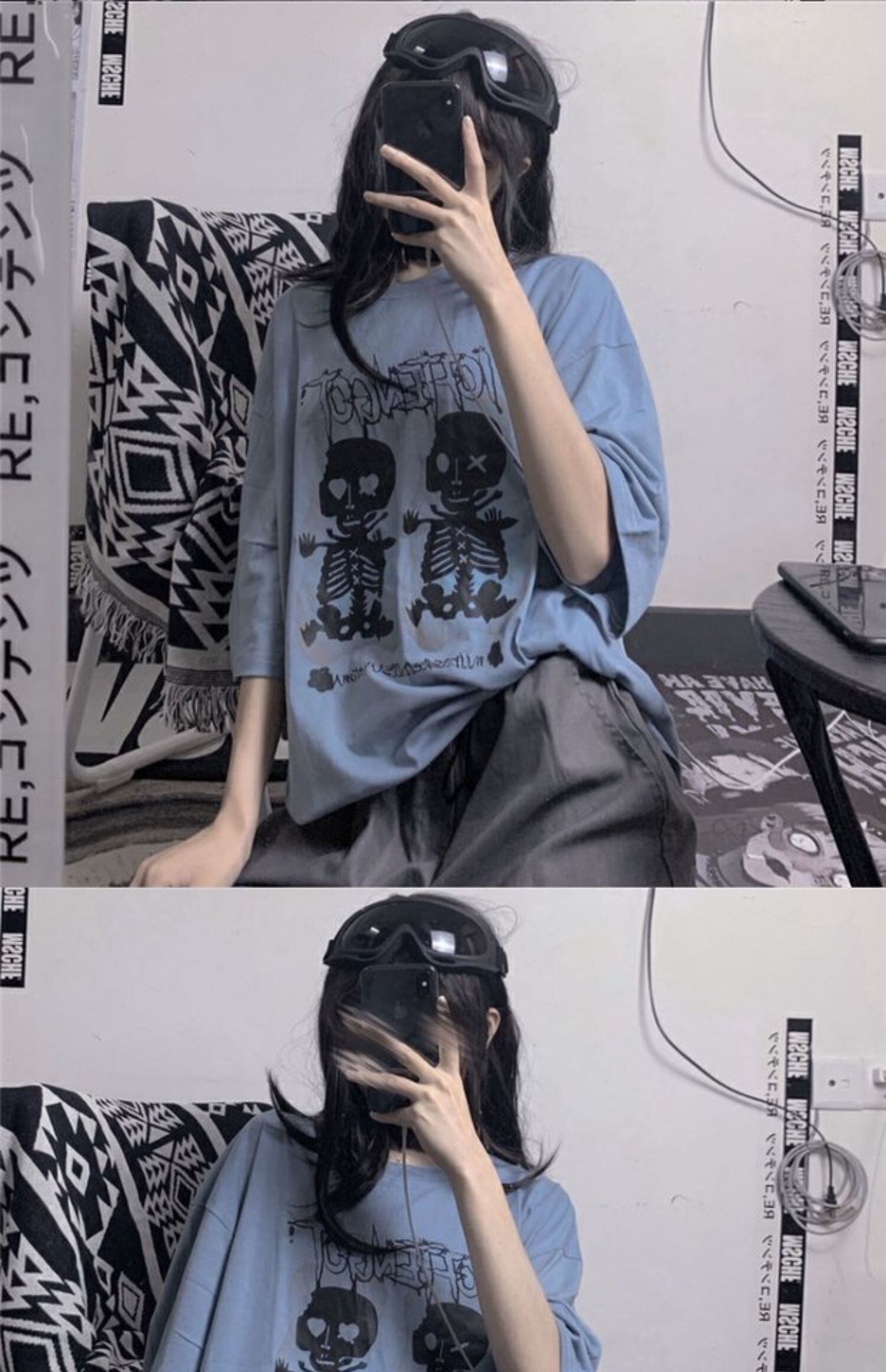 Tシャツトップス 夏服韓国ファッショントレンドプリント柄ルーズラウンドネック半袖スリーブ ショート ハーフスリーブ 夏物 Oネック スタイル デーモン25907781964