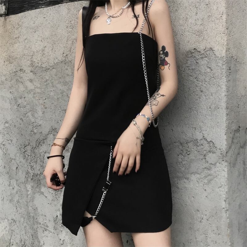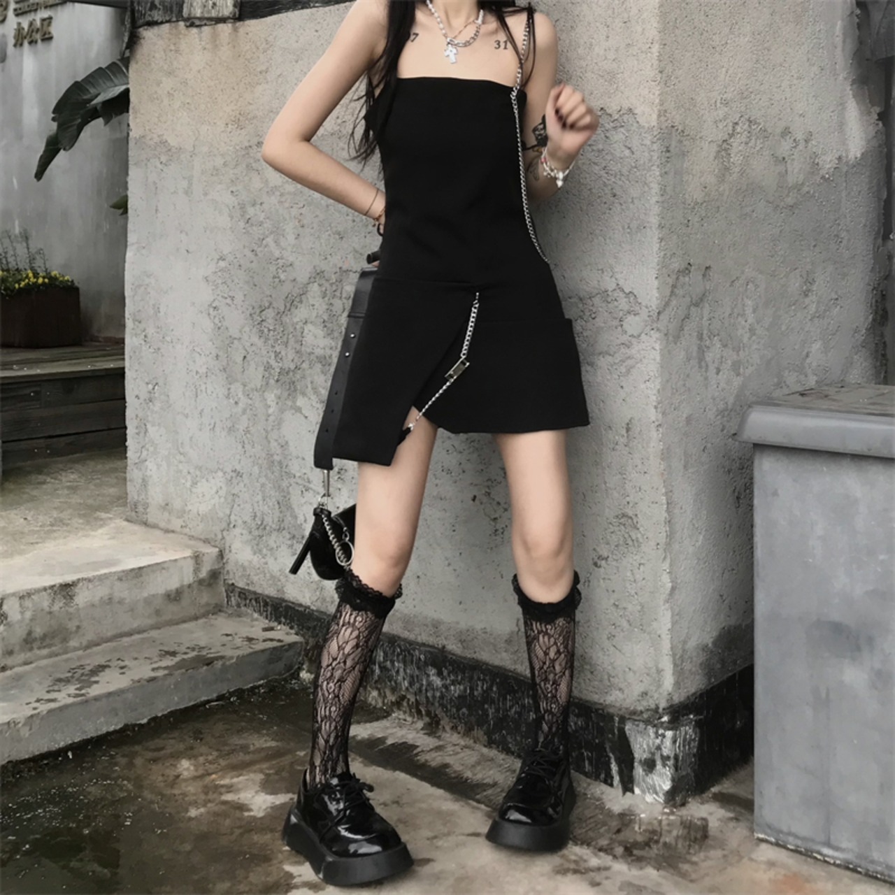 韓国ファッションワンピーストレンドダークメタルスカート ウェストスリム ウエスト CHIL64969293553