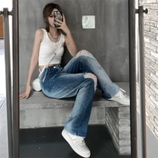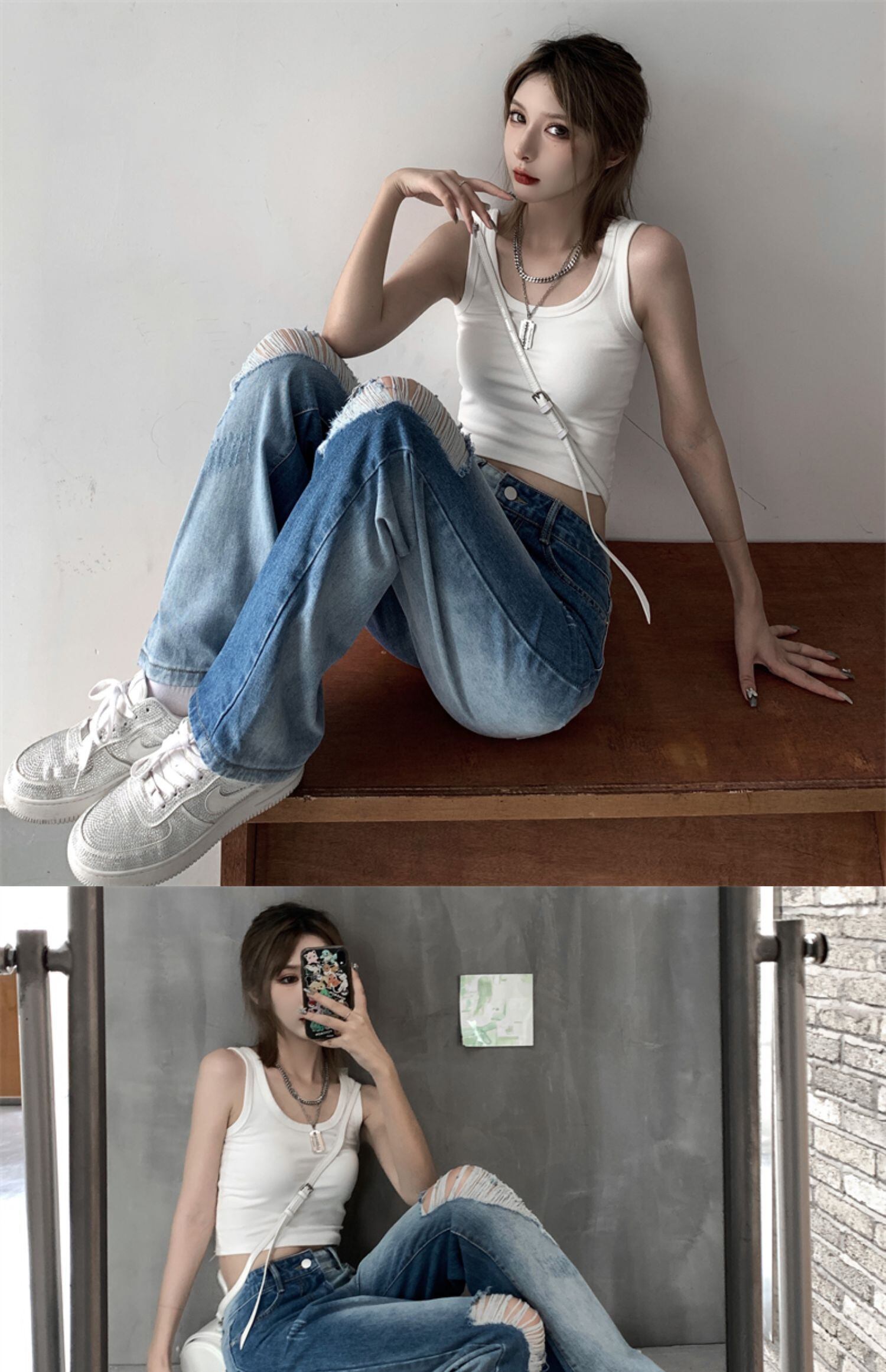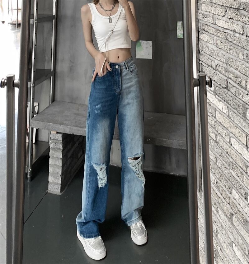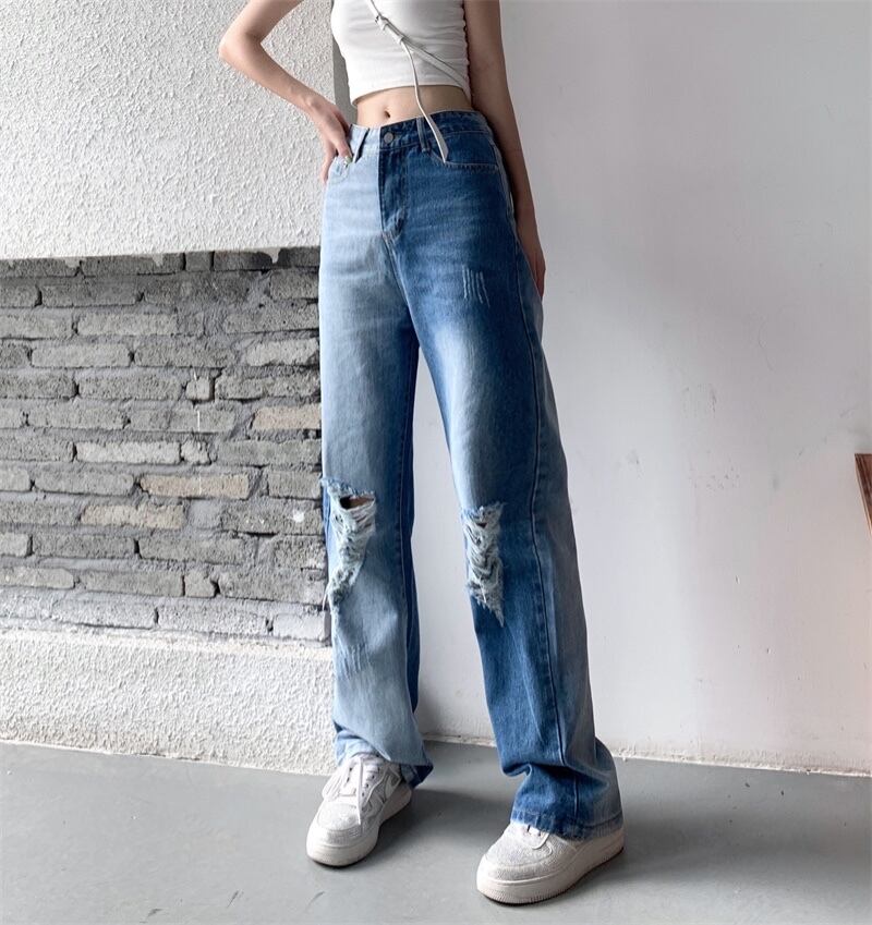 ウェストジーンズ レディース夏服トレンドブルールーズ薄手パンツ 夏物 ウエスト デーモン18834563544