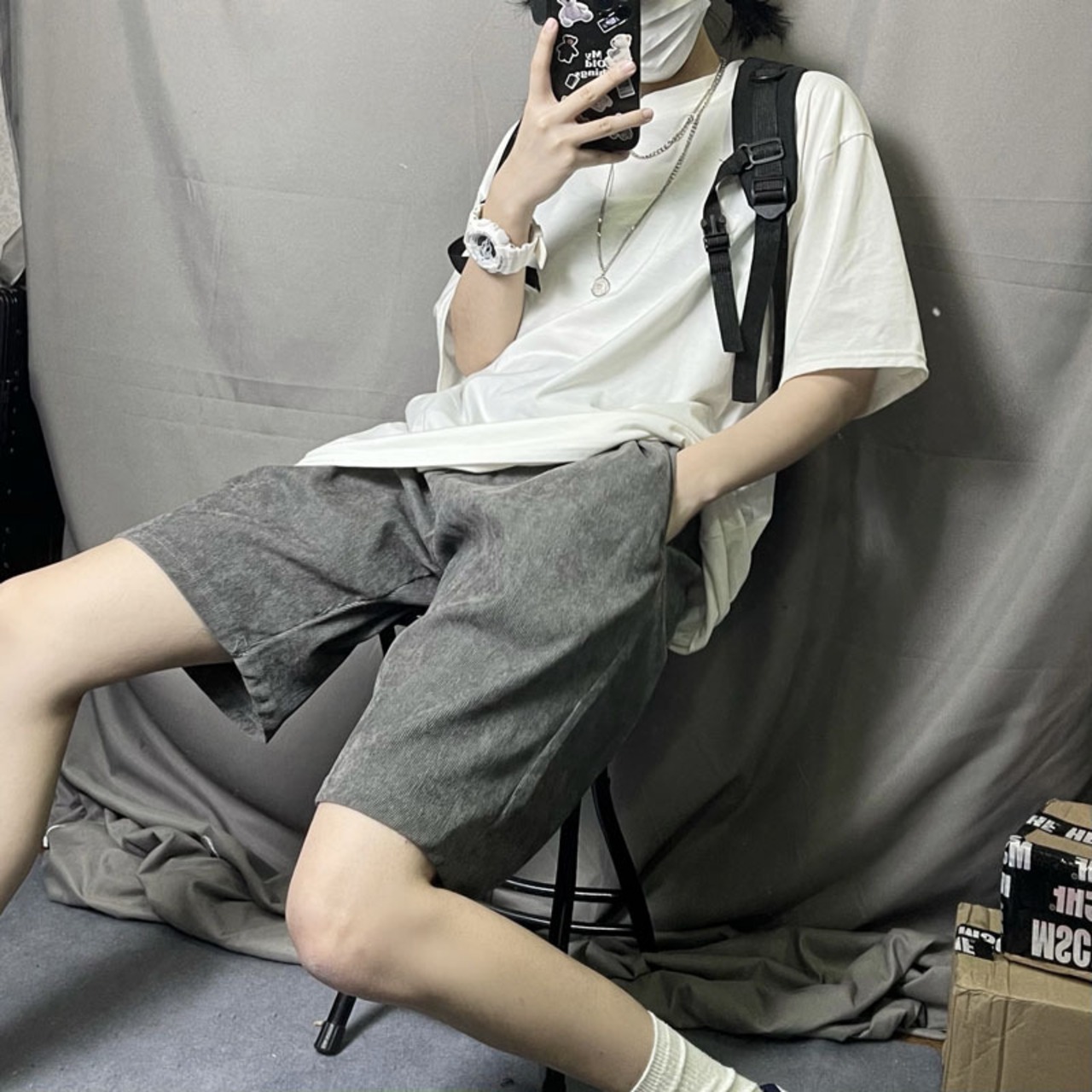 パンツ 夏服トレンドスタンダードコーデュロイショーツ ルーズカラー レトロ 夏物 ピュア デーモン87306669219