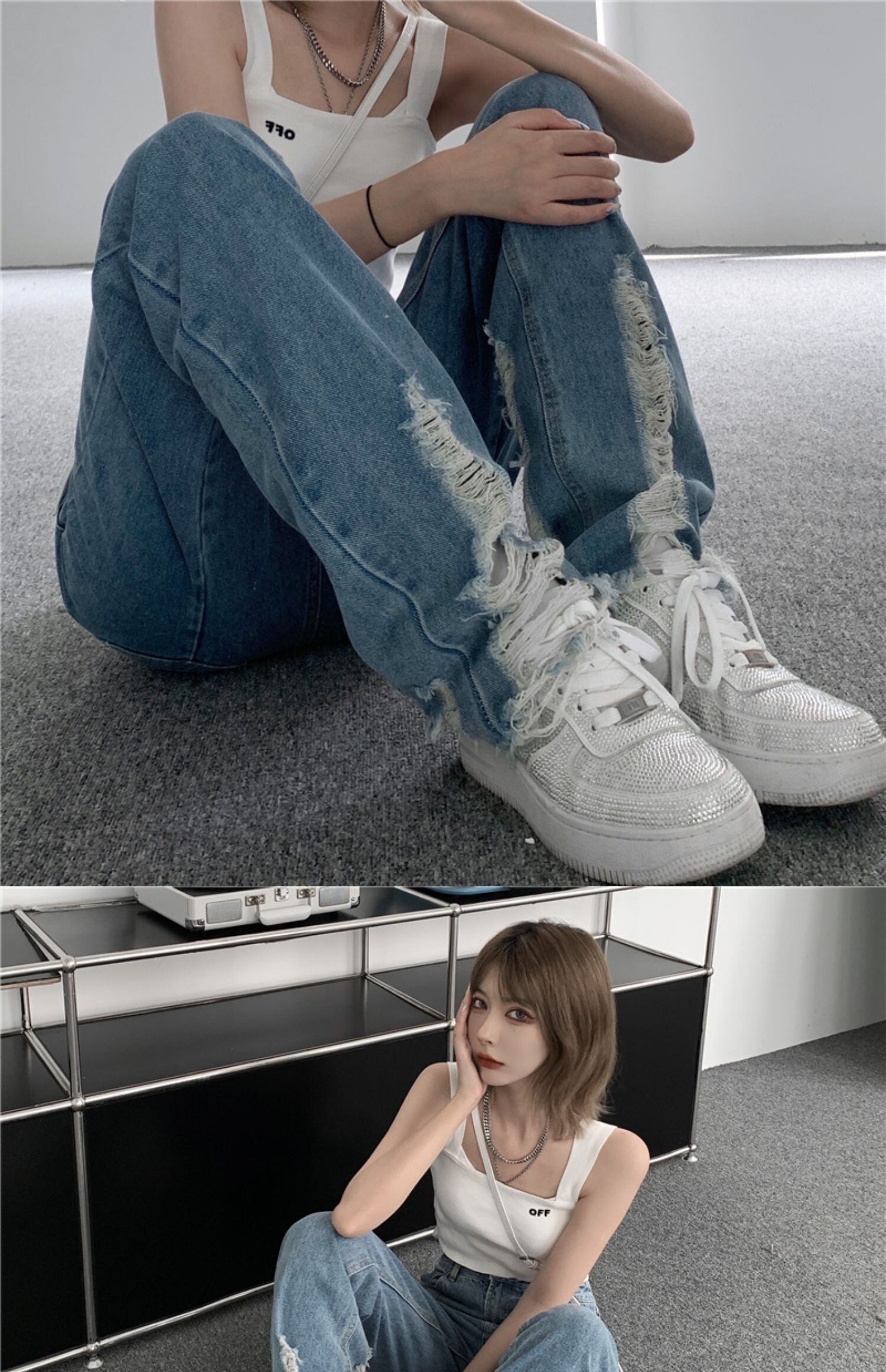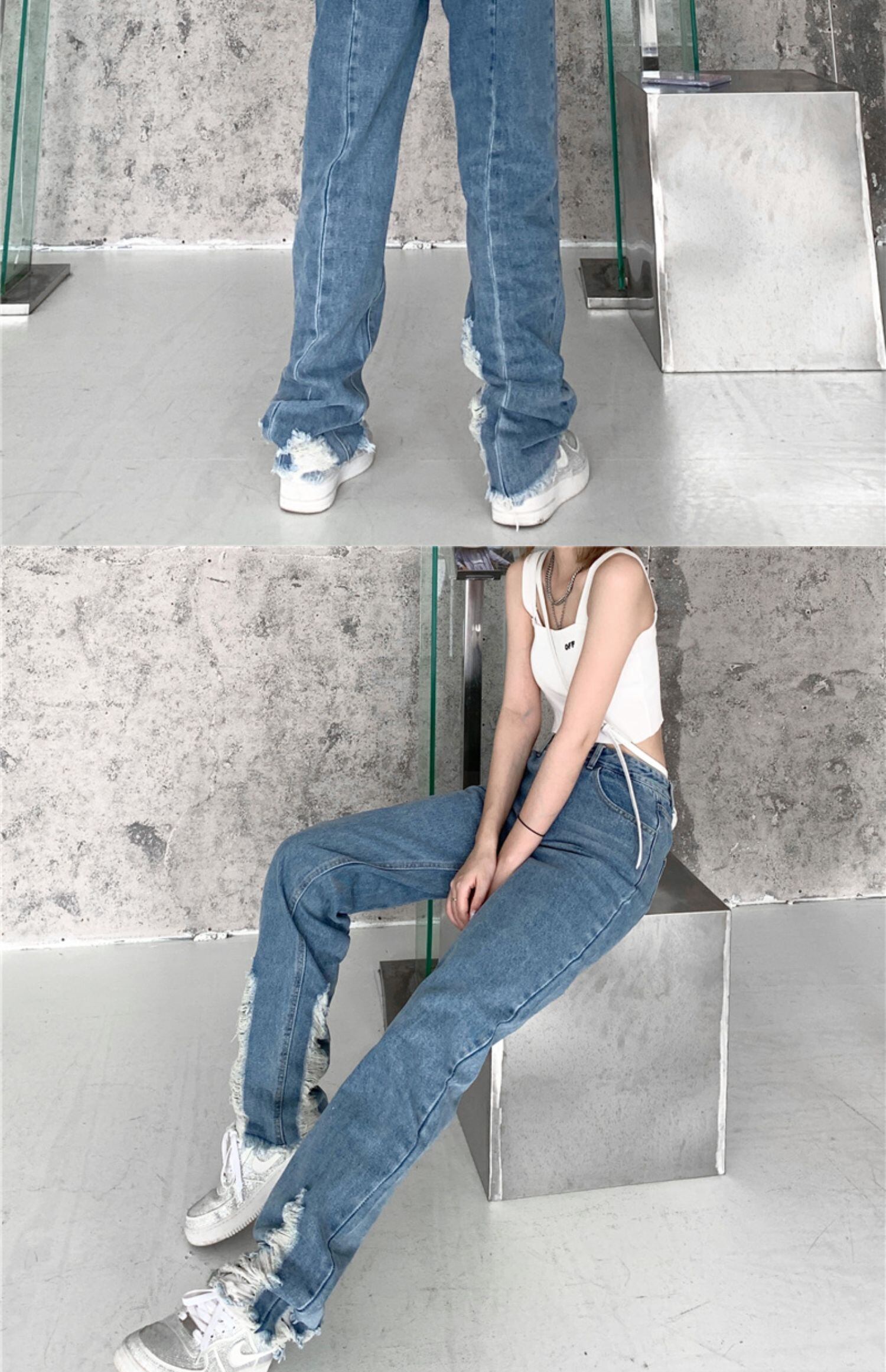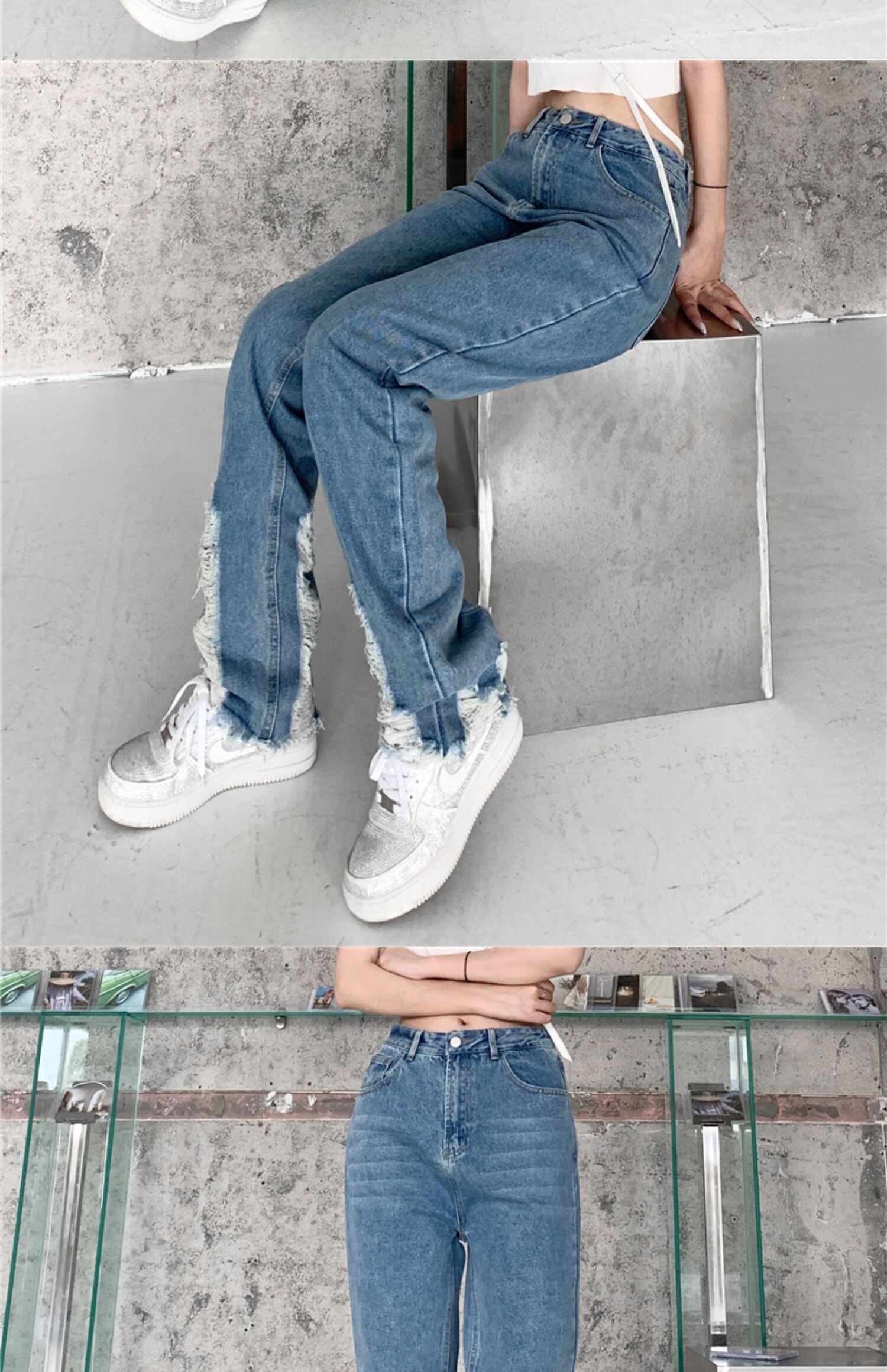 夏服薄手ジーンズ レディーストレンドルーズハイウェストパンツ 原宿 夏物 ウエスト デーモン20648543249