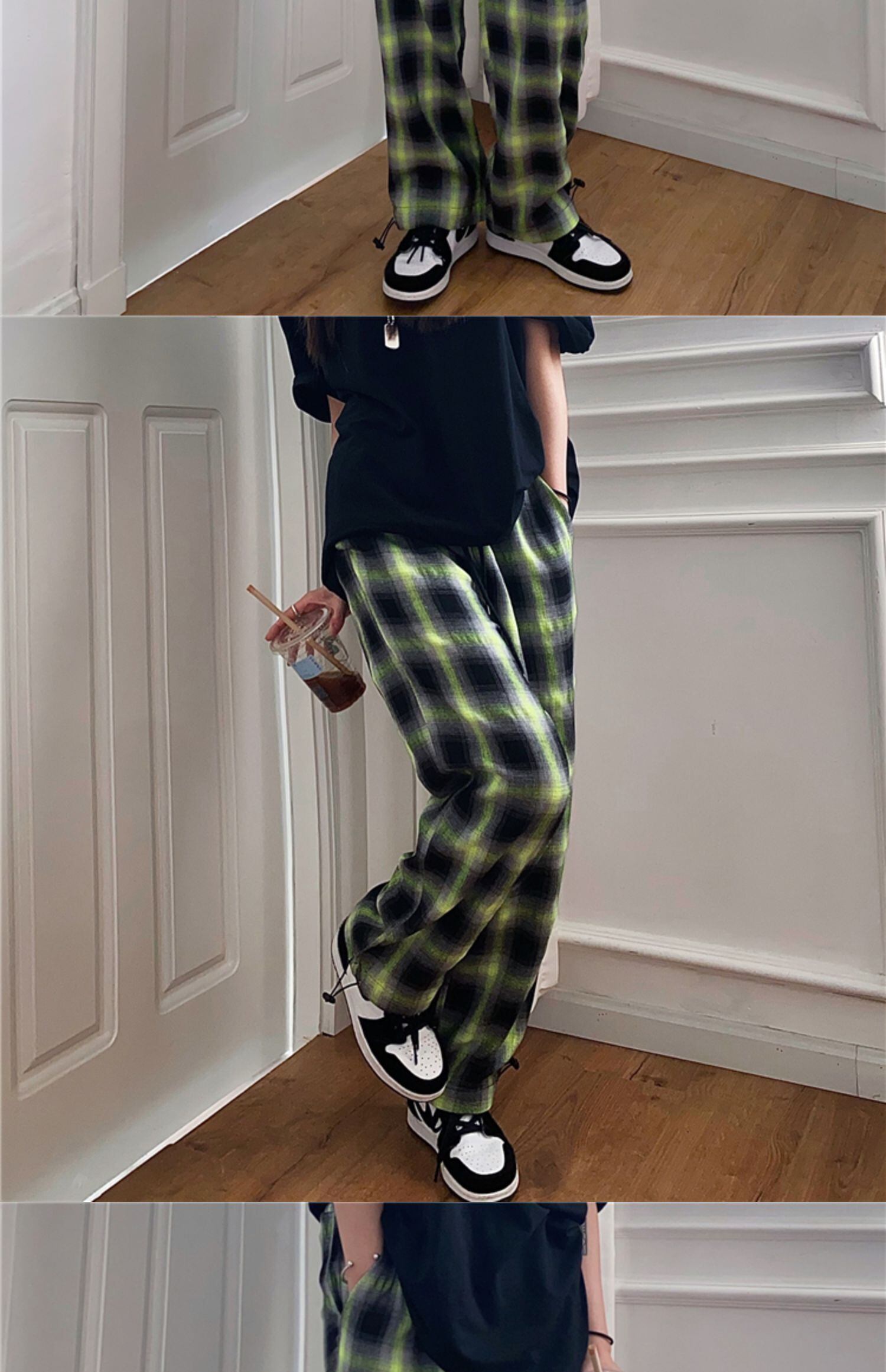 格子柄パンツ レディース夏服トレンドダークルーズ薄手カジュアル ストリート 夏物 デーモン87884512283