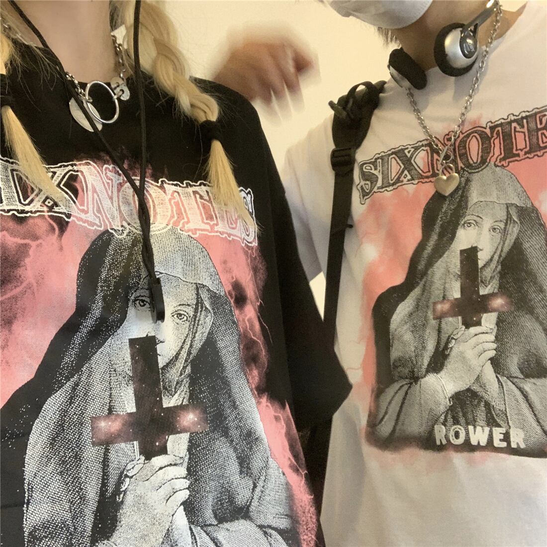 Tシャツ夏服レディース韓国ファッショントレンドスタイルプリントルーズトップス 原宿 夏物 デーモン32805503091