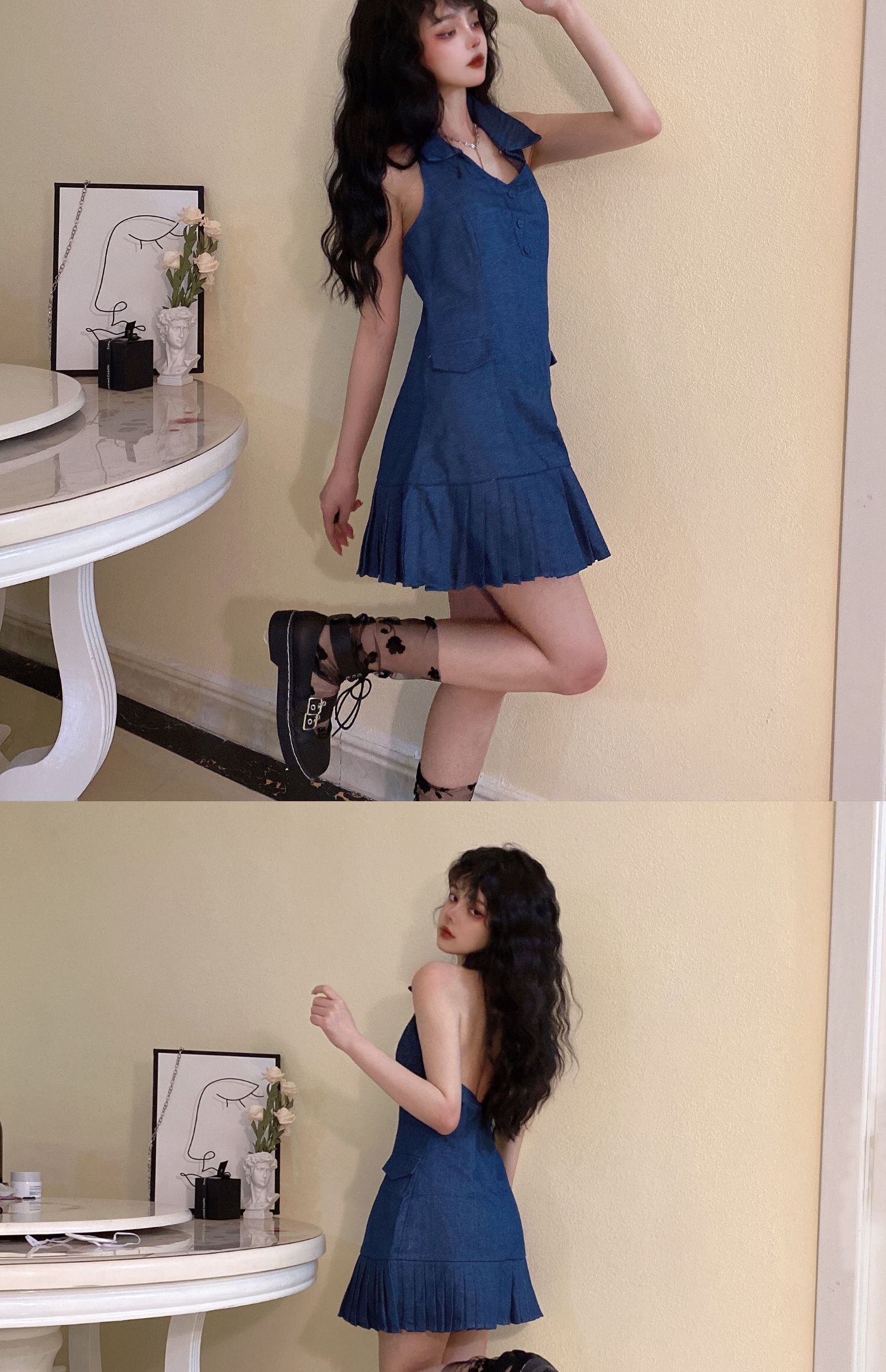 ホルターワンピースレディース夏服トレンドハイウェストウェストVネック薄手Aラインショートスカート 夏物 ウエスト デーモン30807406013