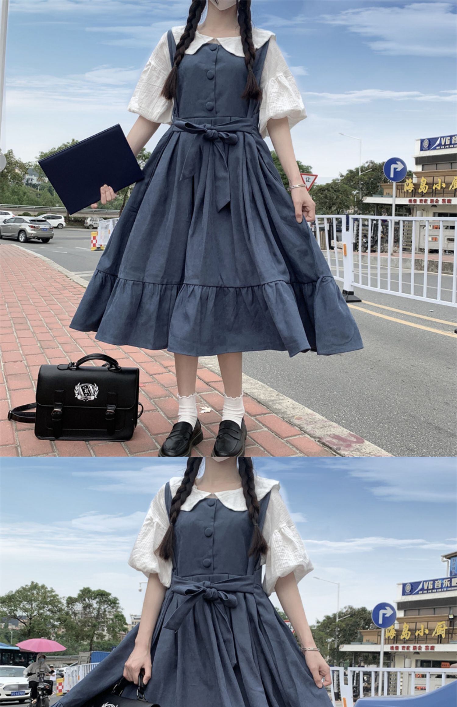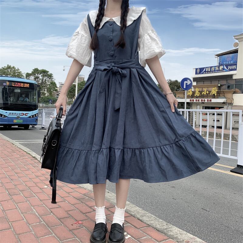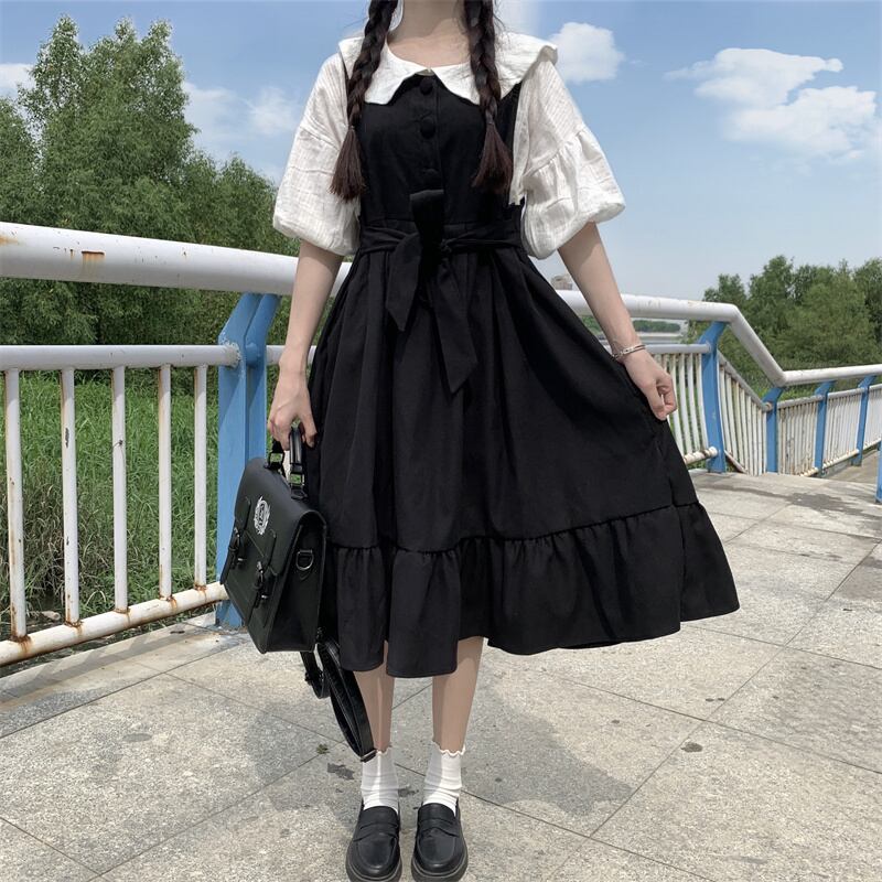 夏服ワンピースレディーストレンドバンドハイウェストウェストスカート スリーブシャツ 夏物 ウエスト ミドル丈 デーモン58669543169