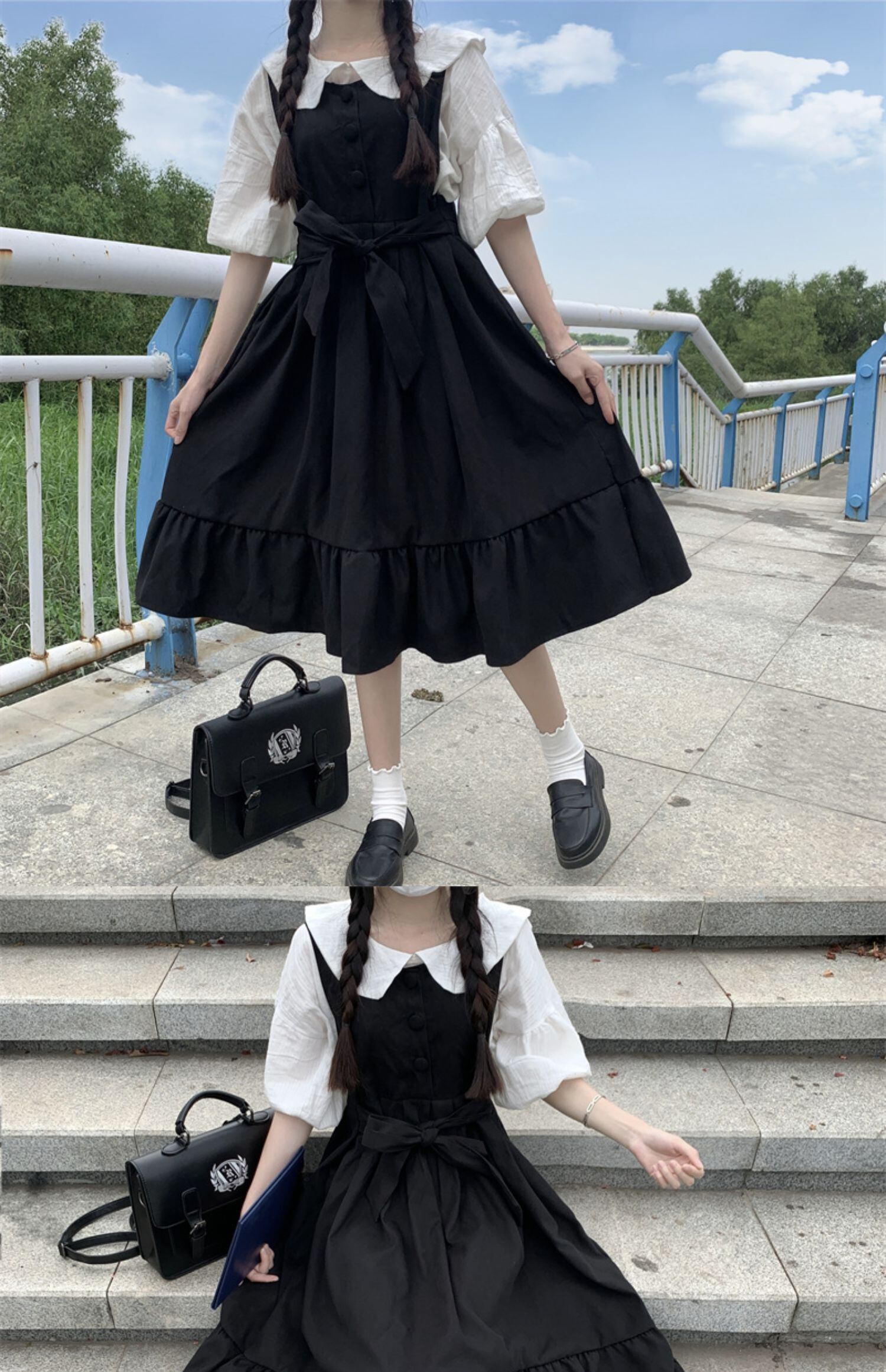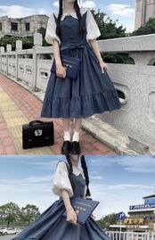 色:コート,青い服,黒いドレス