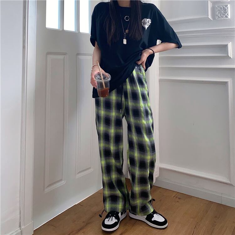 トレンドダーク格子柄カジュアルパンツ メンズレディース CHIL72640110859