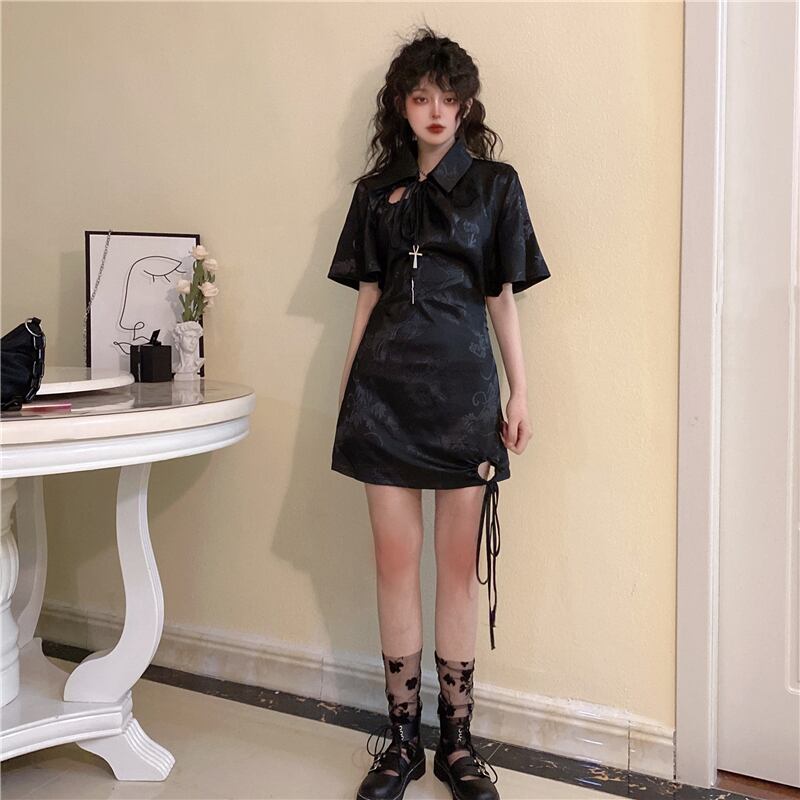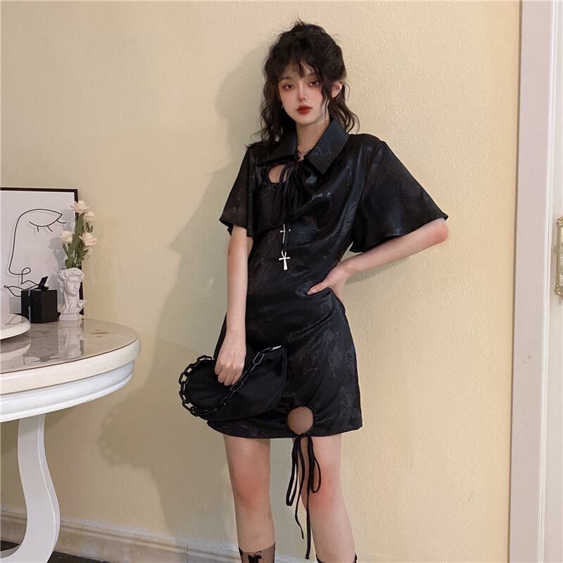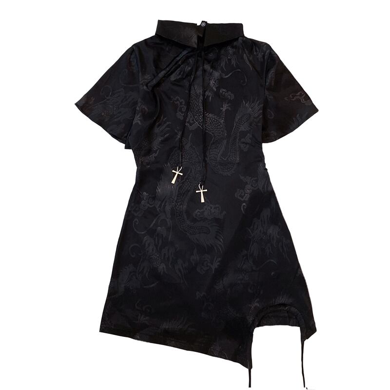 夏服ワンピースレディーストレンドダーククロスカラー薄手スカート 夏物 スクウェア ボーイズ デーモン5635808266