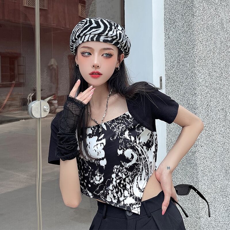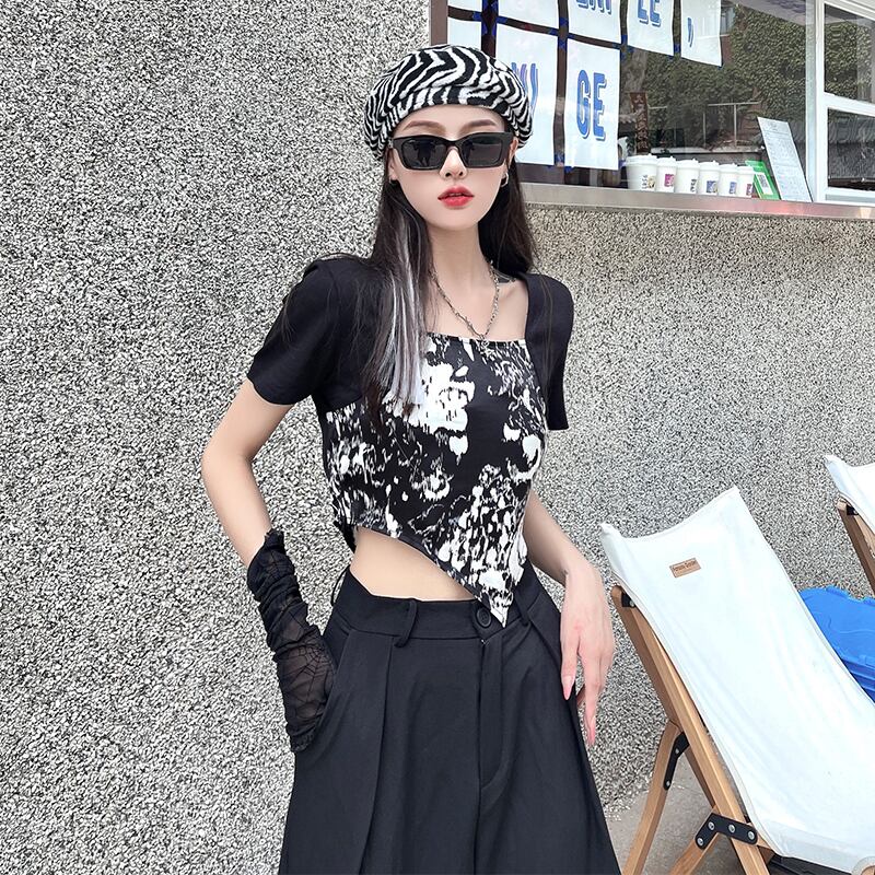 ショートTシャツレディース夏服トップス 夏物 スクウェア ステッチ CHIL93552768472