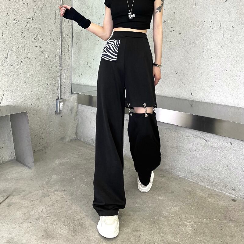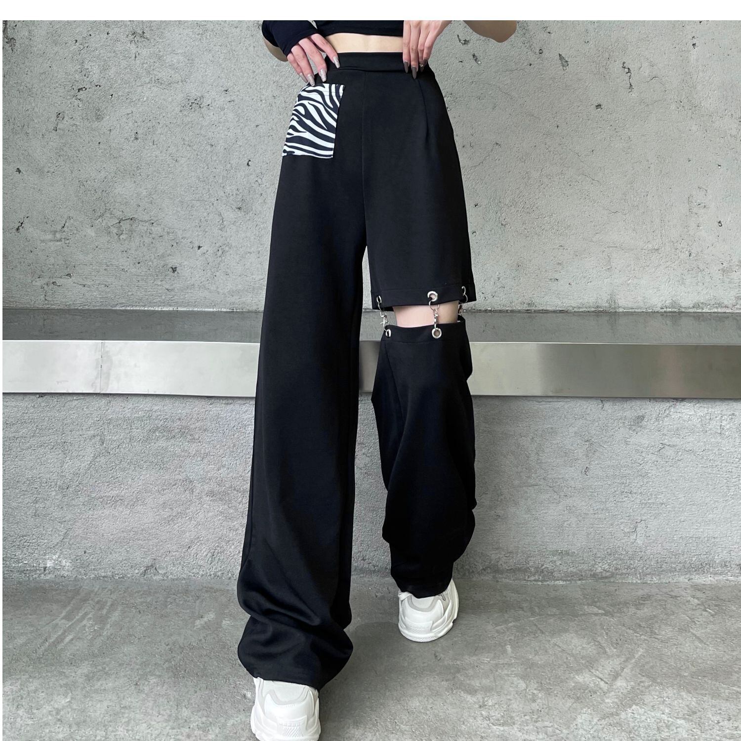 夏服チェーン ブラック薄手ハイウェストウェストカジュアルパンツ 夏物 ウエスト CHIL5105705330