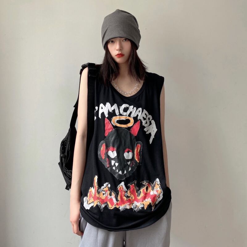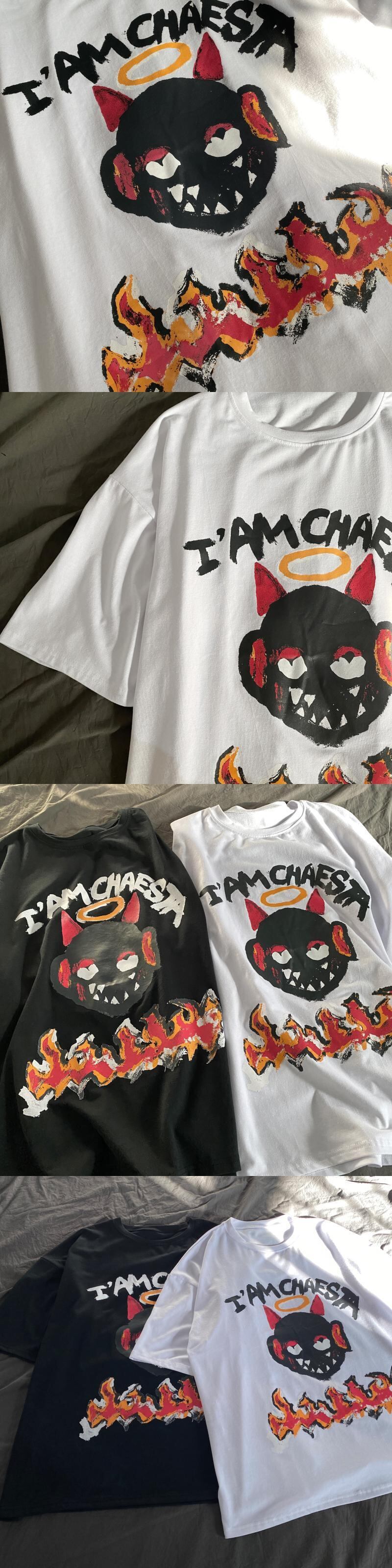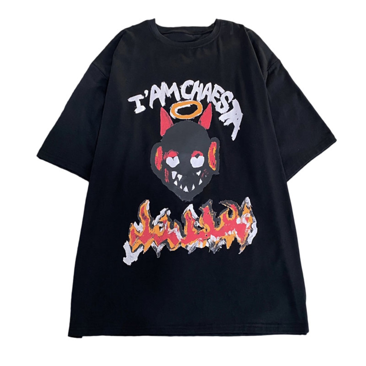 夏服トレンドダークプリントルーズTシャツメンズレディース ストリート 原宿 夏物 ヨーロピアン CHIL1150207241