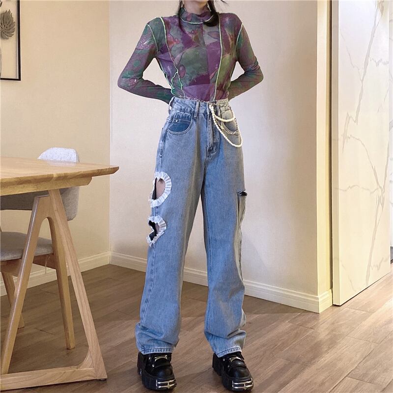 ジーンズ レディースルーズスタンダード夏服韓国ファッションハイウェストウェスト薄手 レトロ 夏物 スタイル ウエスト CHIL52512191141
