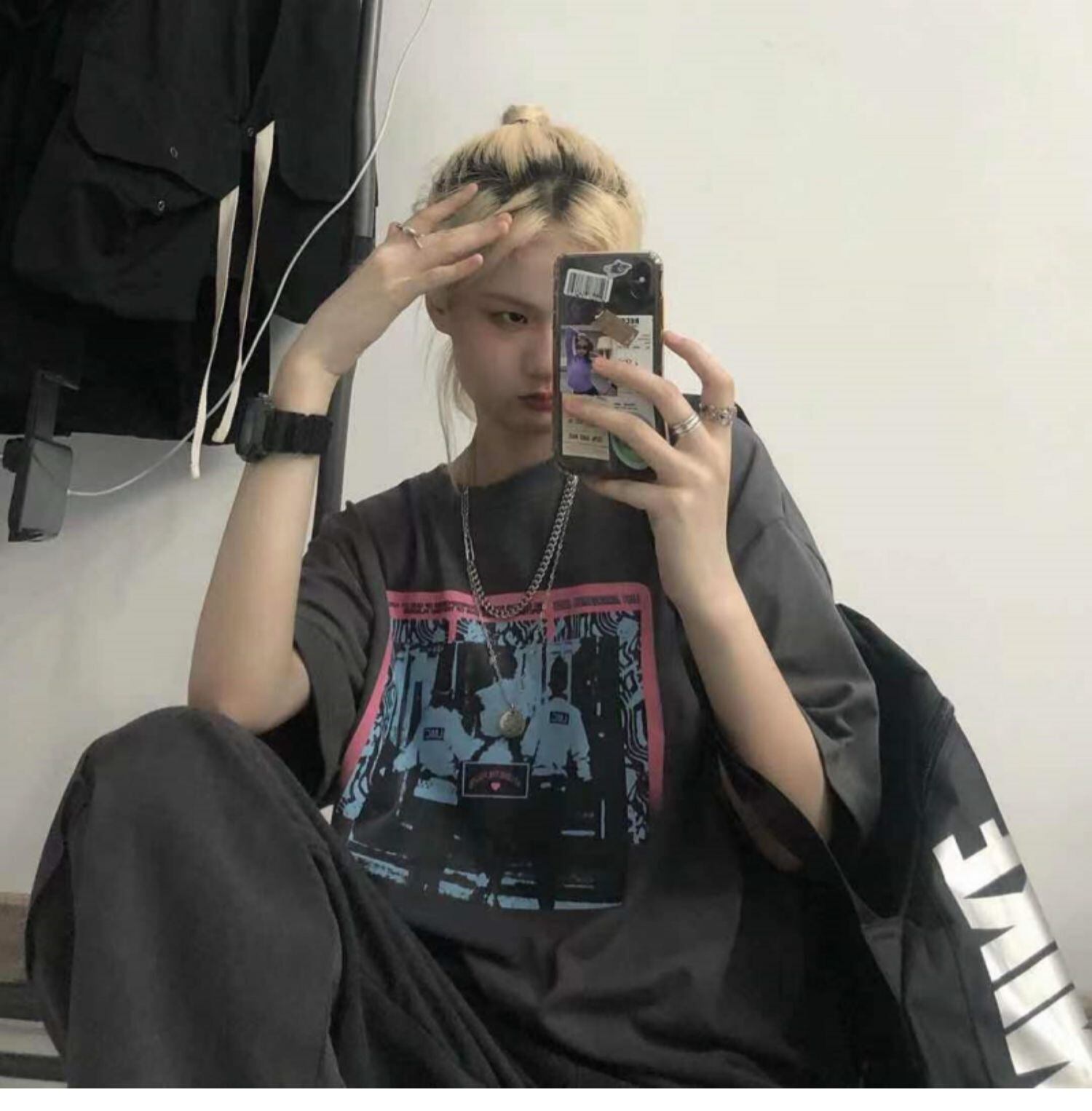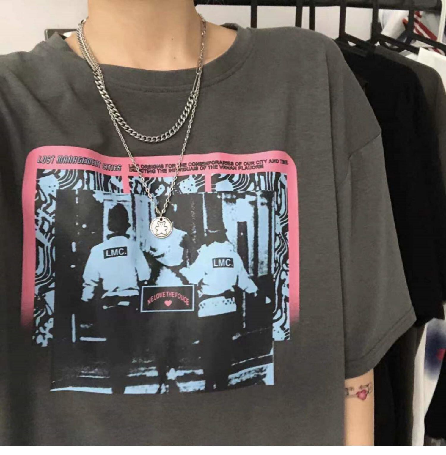 夏服ダークスタンダードグレープリントルーズTシャツトップス レディース レトロ ストリート 夏物 CHIL97865208690