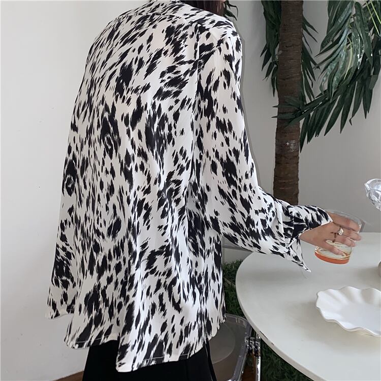 夏服スタイルルーズブラックホワイトレオパードプリント柄シャツ レディース ロング 原宿 夏物 長袖 CHIL36286822780