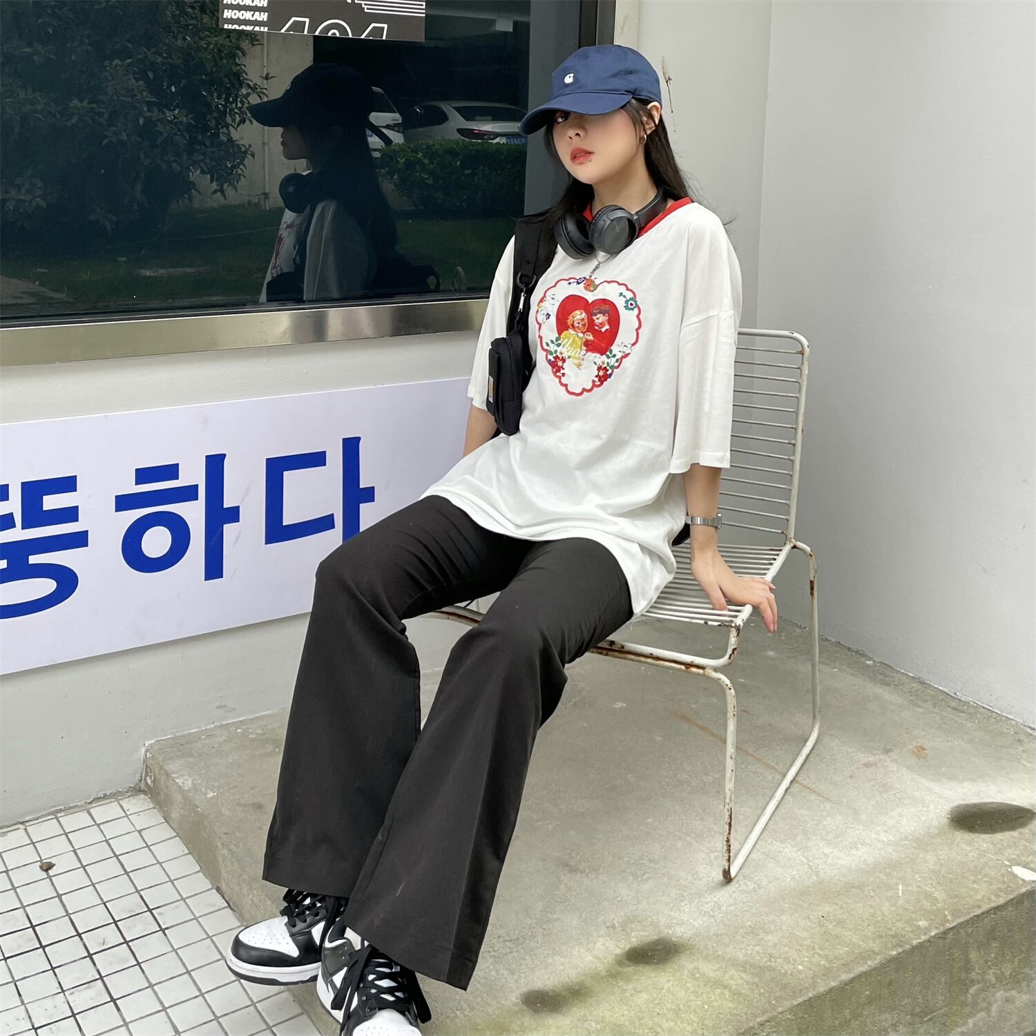 夏服トレンドスタイルスタンダードトップス ルーズTシャツレディース レトロ 大人ガーリー スウィート キュート カジュアル 夏物 CHIL36693059676