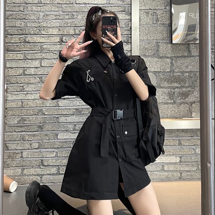 シャツ レディース夏服薄手トレンドスタンダードブラックトップス レトロ 夏物 CHIL81219781561