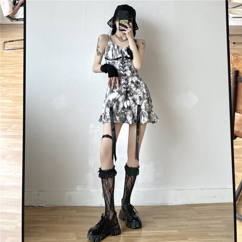 ワンピース夏服スカート ウェストVネックギャザーシフォン 夏物 ウエスト CHIL11560318715