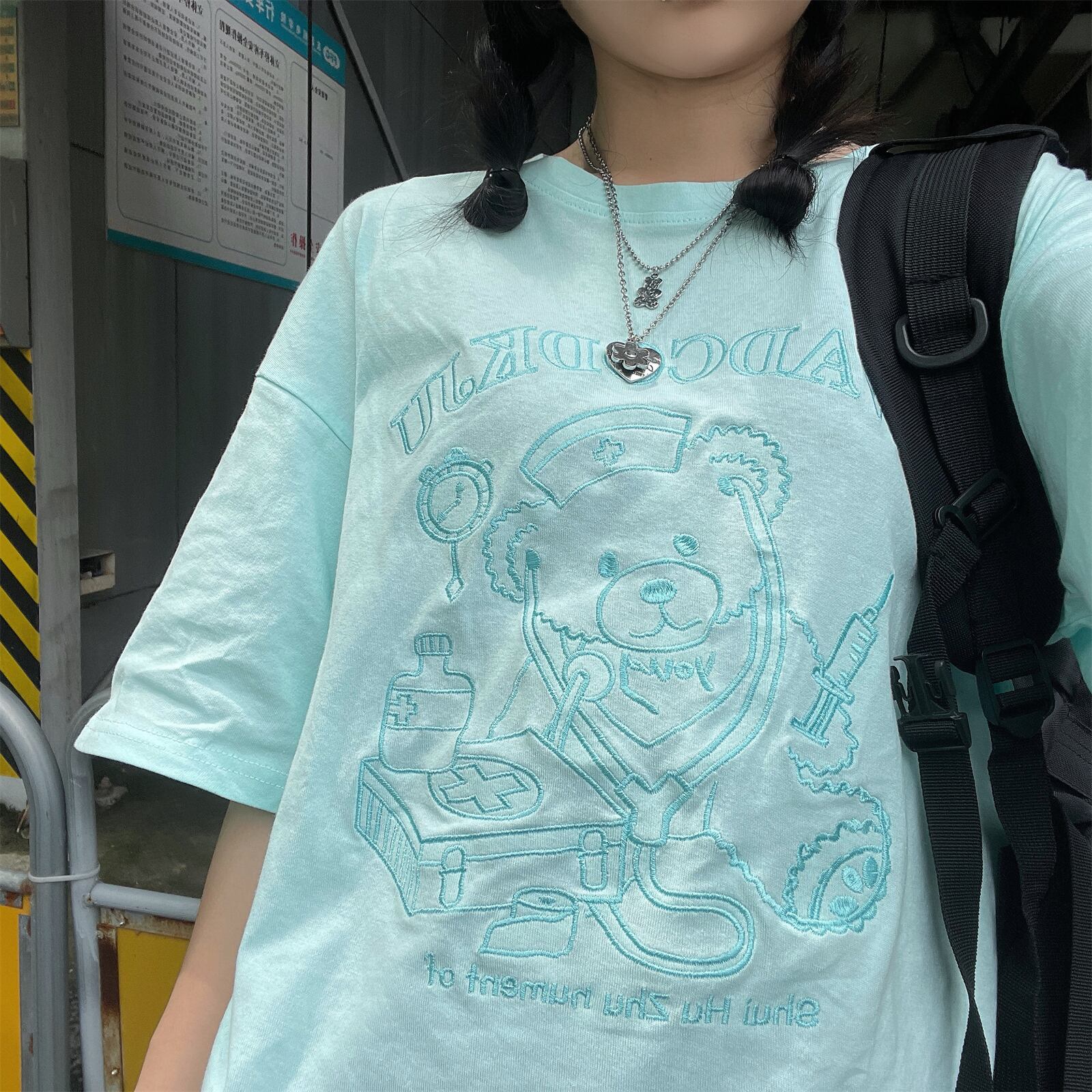 夏服韓国ファッションルーズ刺繍Tシャツトップス レディース 夏物 スタイル CHIL56069282540