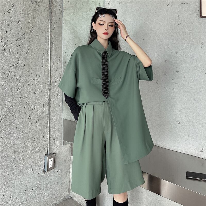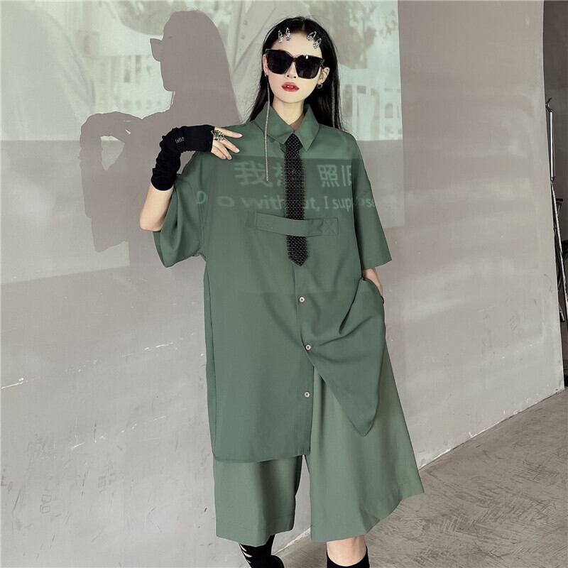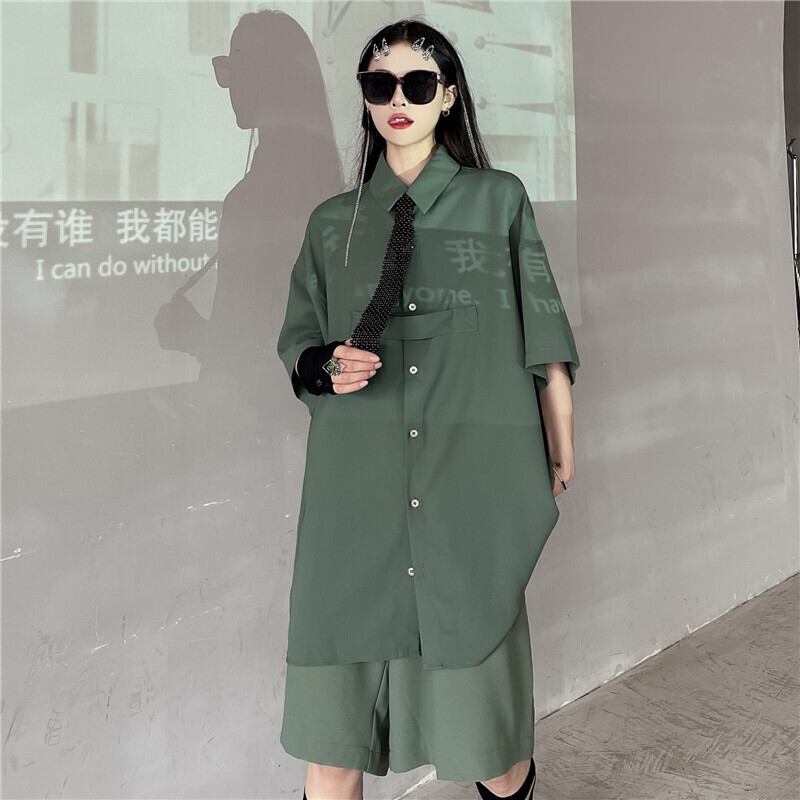 レディース夏服トレンドカジュアルシフォンシャツ ルーズショーツ 夏物 ボーイズ デーモン36682516256