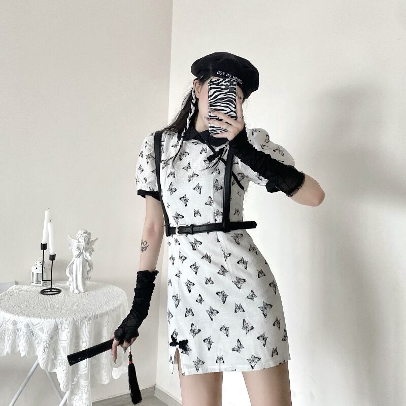 夏服スタンダードワンピースレディースウェストButterflyデザイン プリント柄スカート レトロ 夏物 スタイル ウエスト CHIL3088926317