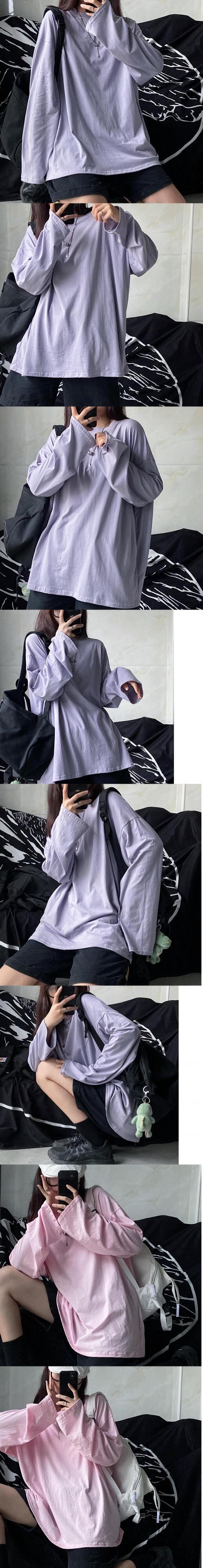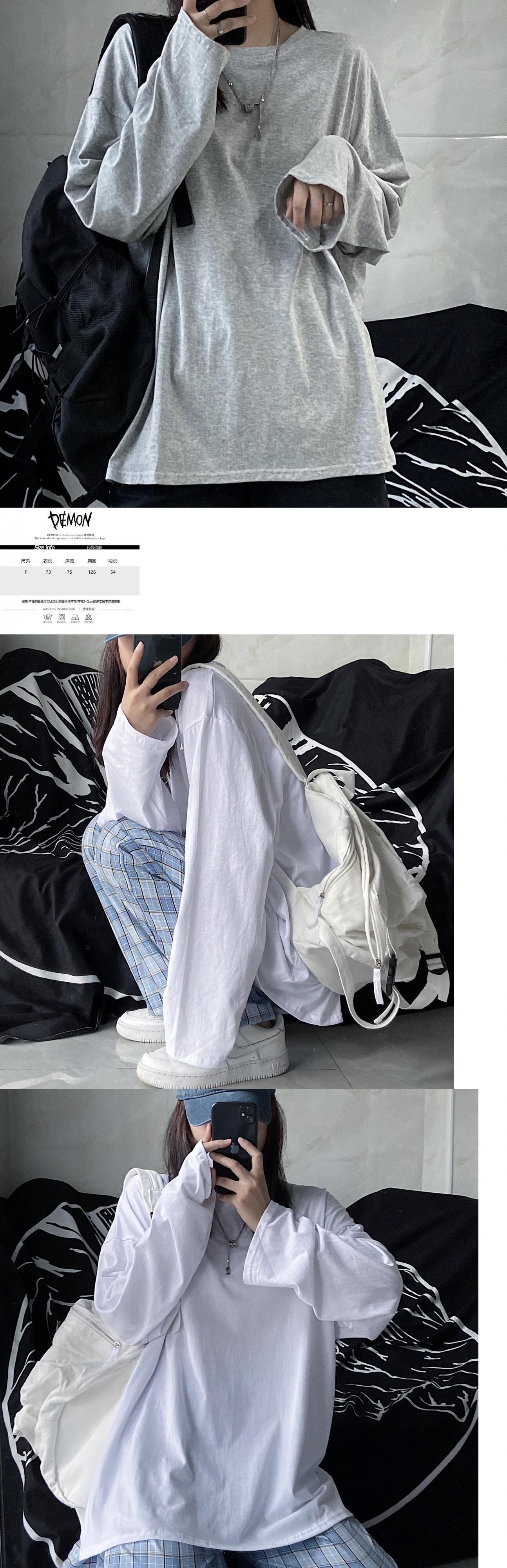 ゆったりシャツ トップス 夏服韓国ファッショントレンドスタイルソリッド カラールーズTシャツ ロング 原宿 夏物 ソリッドカラー 長袖 デーモン59005685107